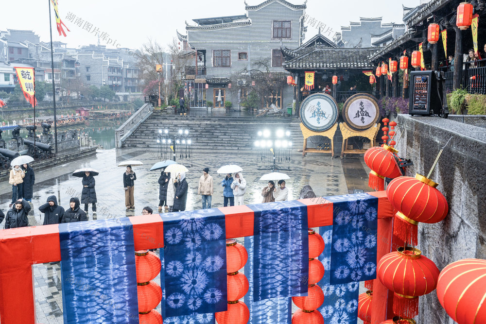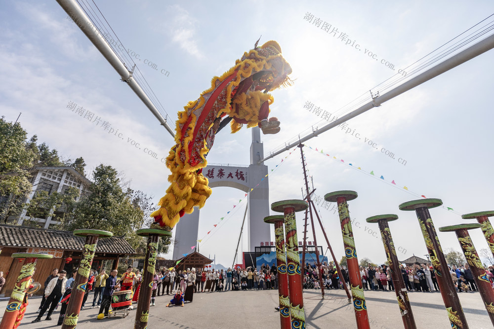 2026年2月21日,吉首市矮寨大桥景区,游客在观看舞狮表演。彭璟 摄