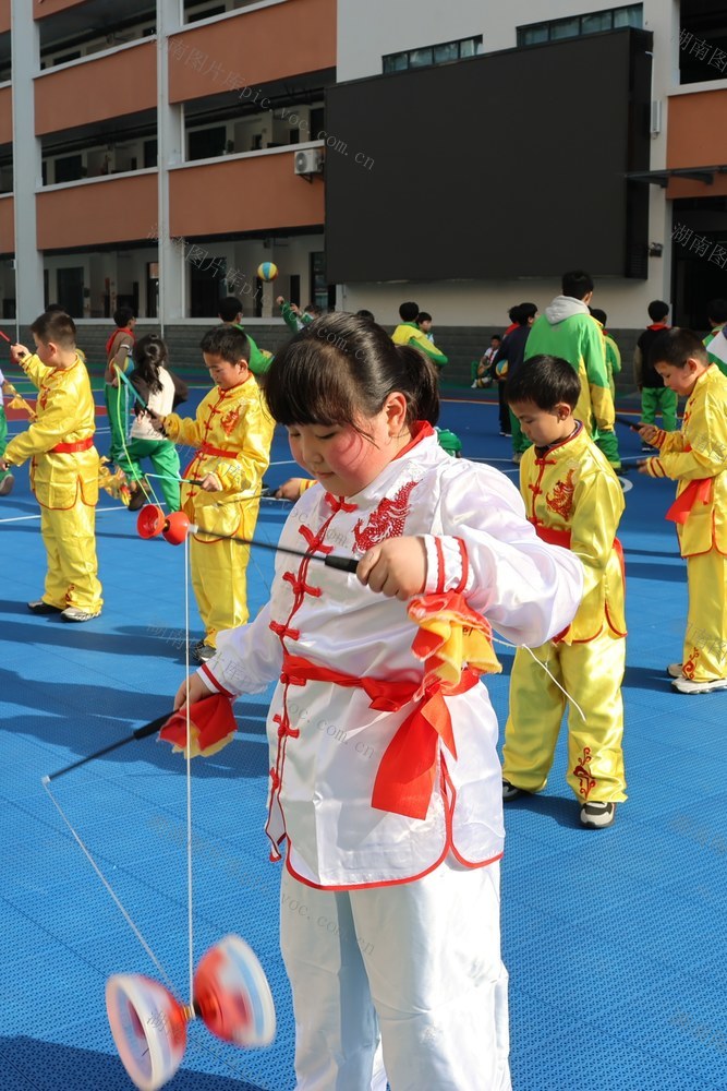 3月10日,湘西土家族苗族藏族自治州砂子坳小学的同学们在练习空竹。彭彪 摄
