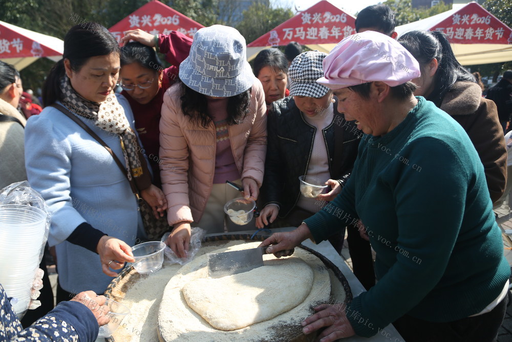 2月3日,.村民用当地特色年味糍粑,免费给资兴市民品尝。欧祖生 摄