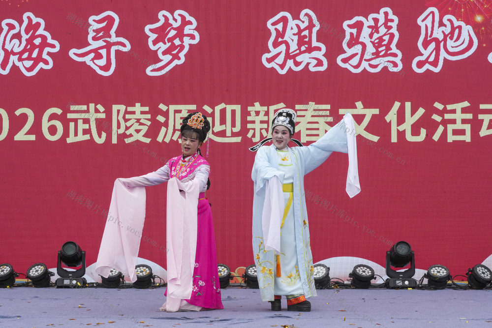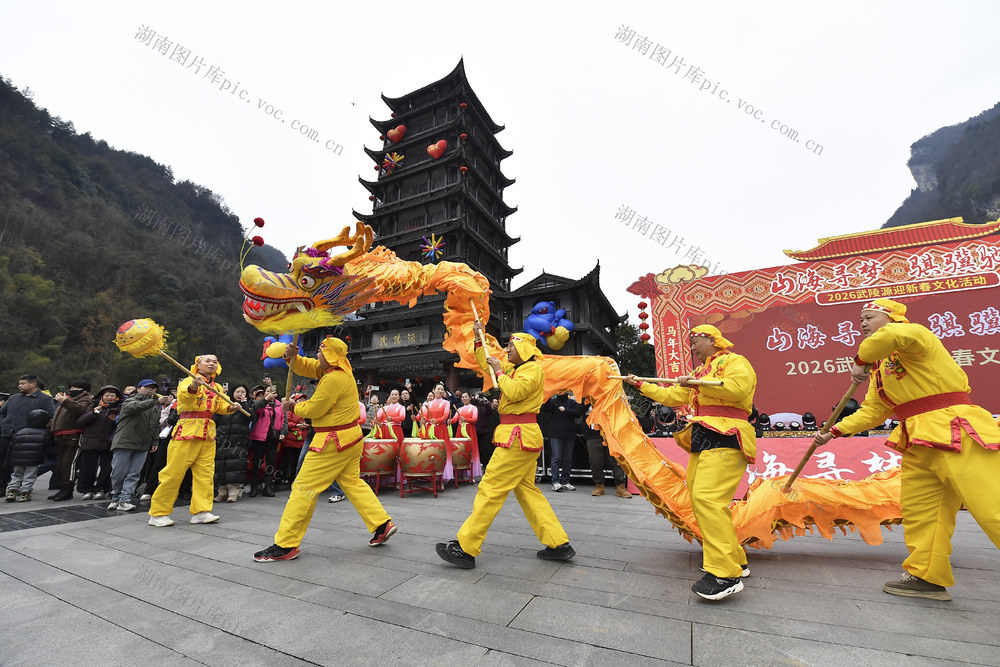 2月17日,在湖南省张家界市武陵源区标志门广场举行的新春文化活动表演。 邵颖 摄