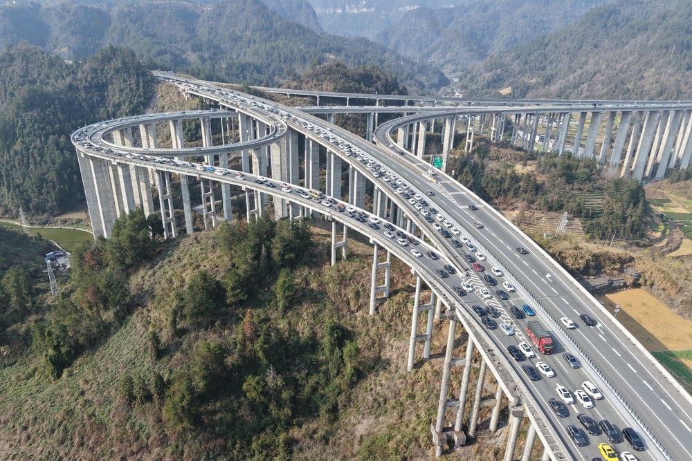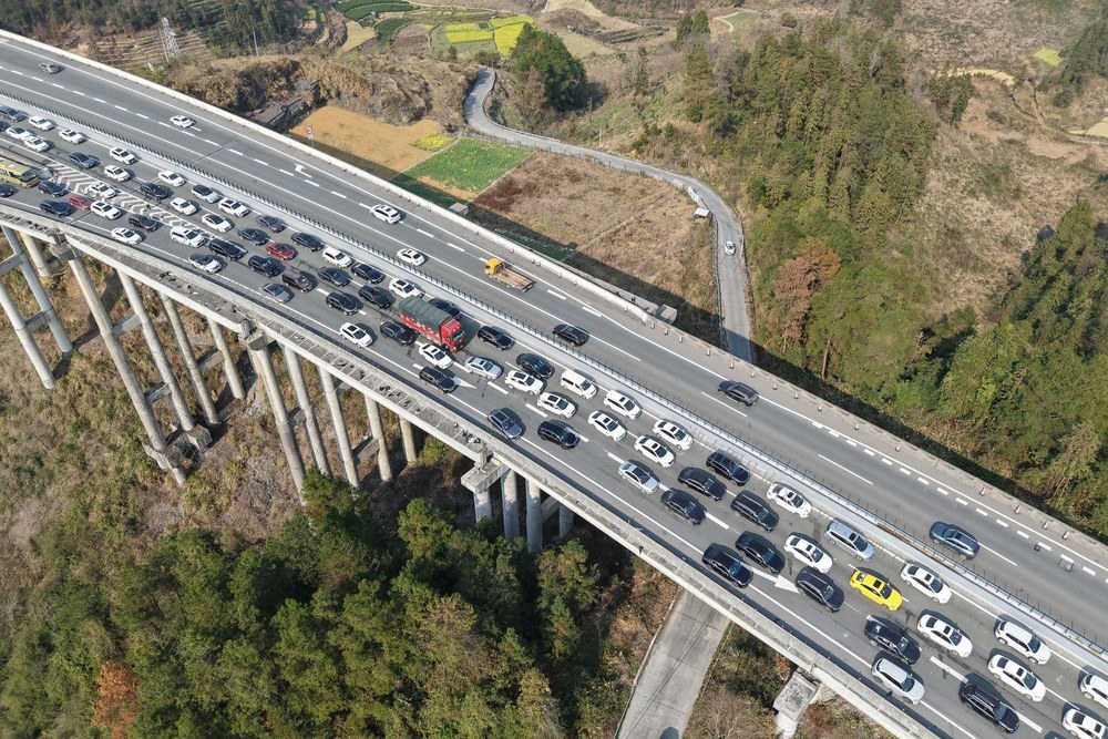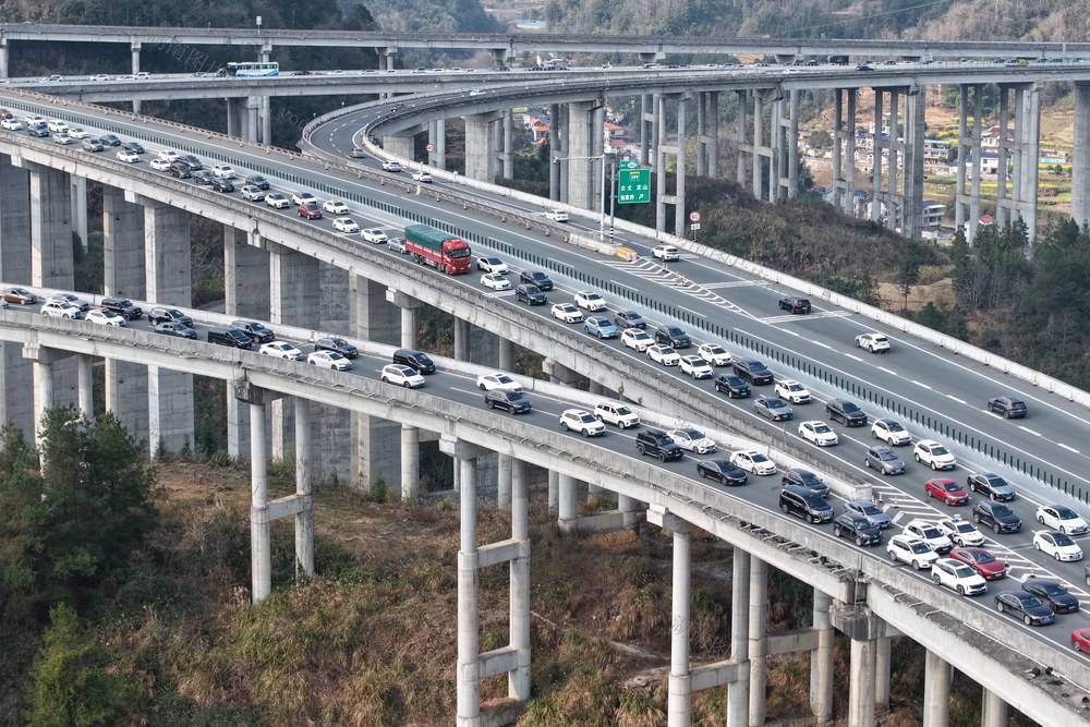 2026年2月22日,车辆在湖南省湘西土家族苗族自治州吉首市石家冲街道石家寨互通附近缓缓行驶。彭彪 摄