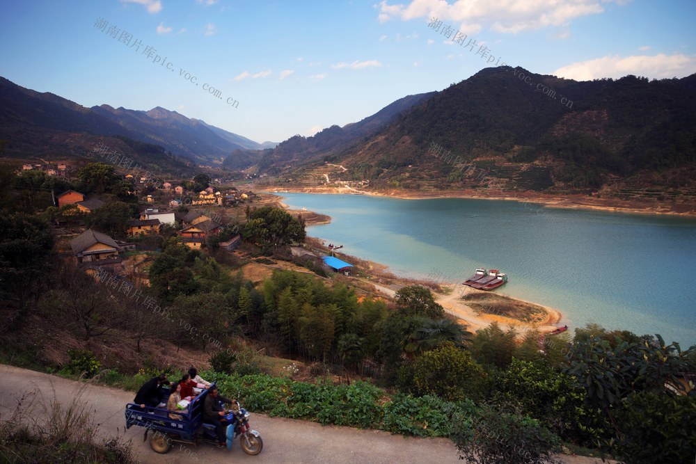 2019年2月6日,库区后靠移民的资兴市滁口镇长活村,村民乘坐三轮车出行。过去卖橘子靠肩挑手提,近几年,随着收入提高、当地道路条件改善,许多村民买了三轮车。