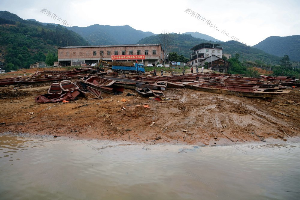 2020年5月1日,资兴市东江湖长盈头码头,渔民将登记、核对过相关信息的铁皮渔船集中后拆解处理。2020年起,当地全面永久性禁止东江湖天然渔业资源生产性捕捞,实行常年禁捕。