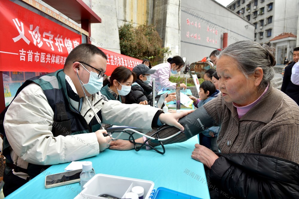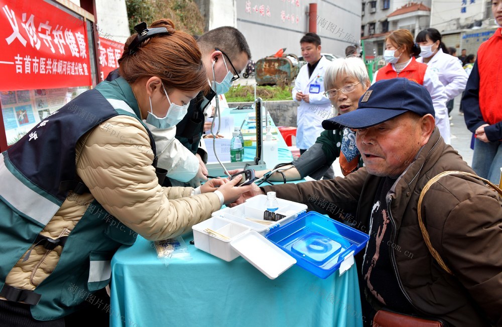 3月5日,吉首市峒河街道向阳社区,医务志愿者在为市民义诊。姚方 杨燕萍 摄影报道