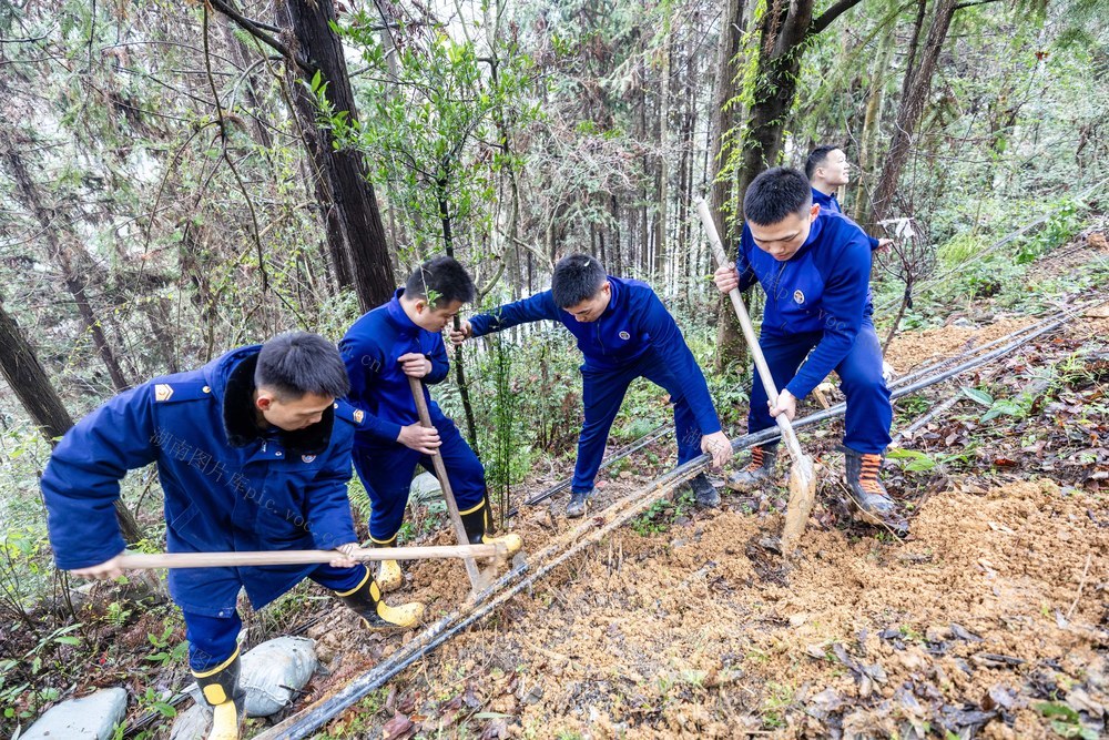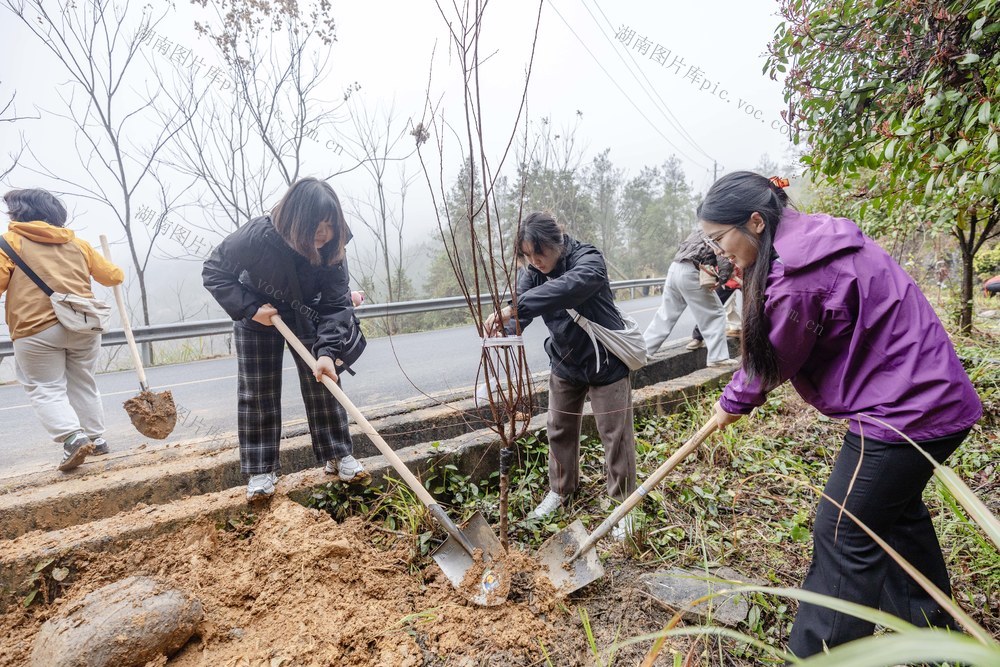 2026年3月10日,吉首市石家冲街道栗溪村,义务植树志愿者在公路沿线栽种树苗。 彭璟 摄