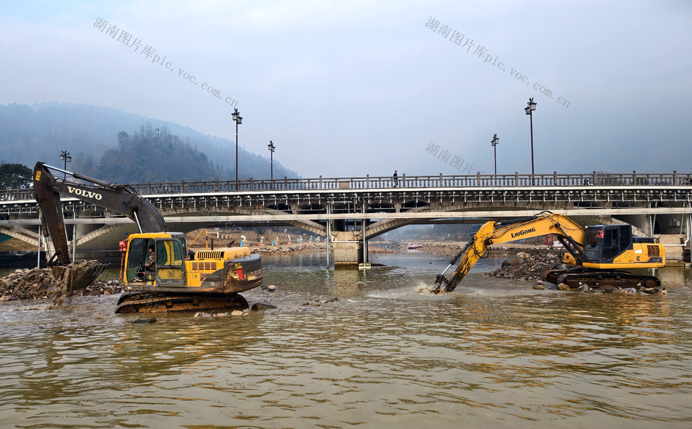6月20日,张家界市武陵源区公路建设养护中心工作人员在疏通路面,清理滑坡体 。 吴勇兵 摄