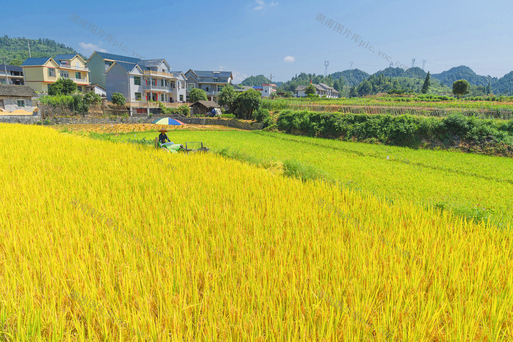 收割机收割稻谷。梁永鸿 摄