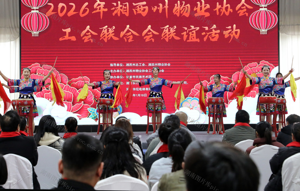 民俗风情引客来 吉首市矮寨镇德夯苗寨,演员在进行鼓舞表演。刘振军 摄