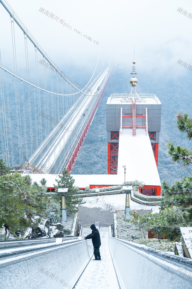 1月20日,吉首市矮寨奇观景区,工作人员在清理积雪。当天是大寒节气,吉首迎来2026年第一场大雪,矮寨奇观景区组织工作人员清扫道路积雪,为游客营造安全的游览环境。梁永鸿 彭丽 摄影报道