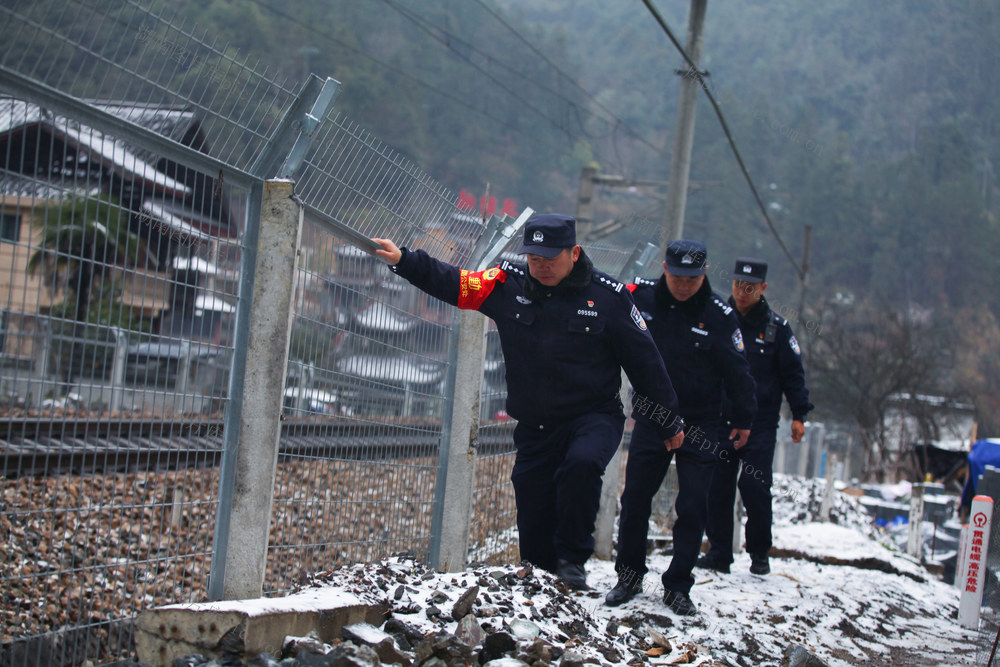 2、民警在检查铁路防护设施。刘亚平 摄