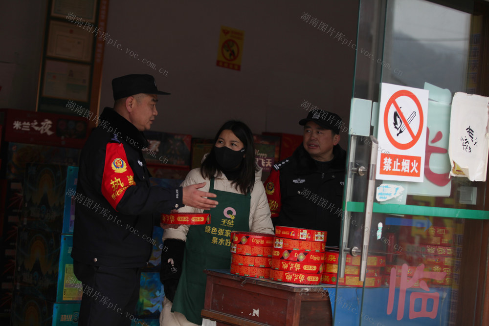 民警在烟花爆竹销售点宣传。刘亚平 李鉴 摄