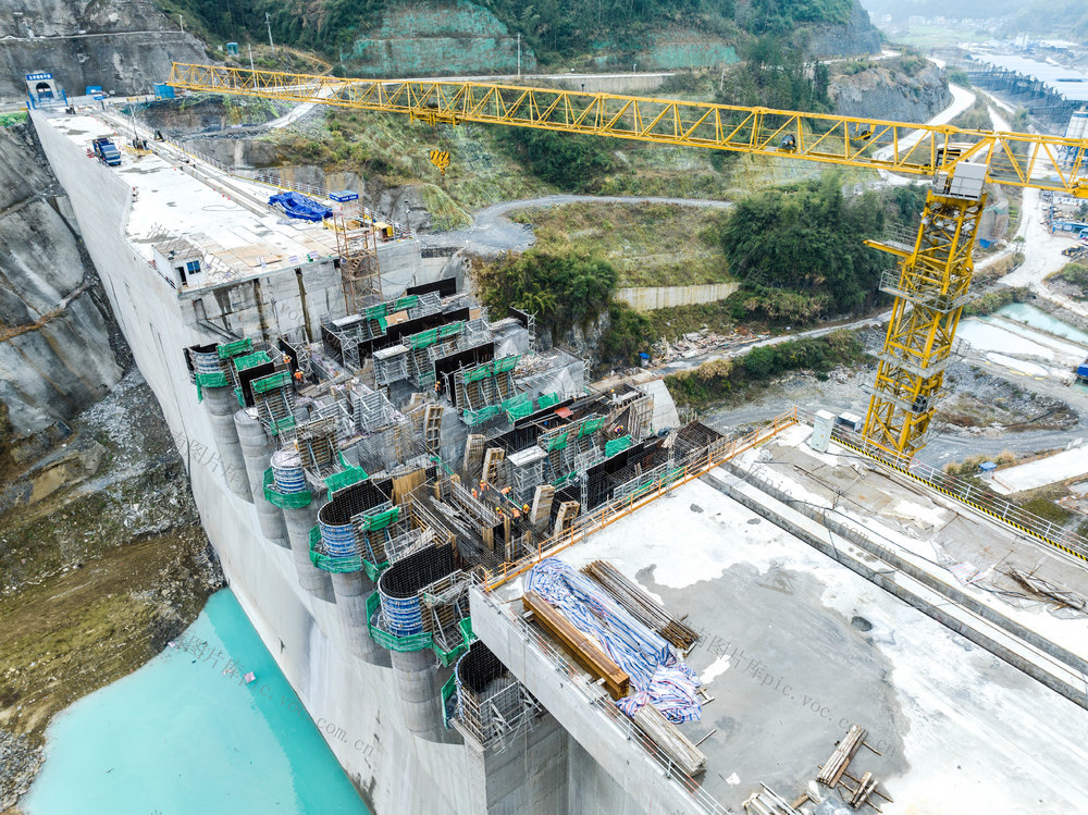 2026年1月22日,吉首市矮寨镇大兴寨水库工程建设现场,工人在进行溢流坝段浇筑施工。彭璟 摄