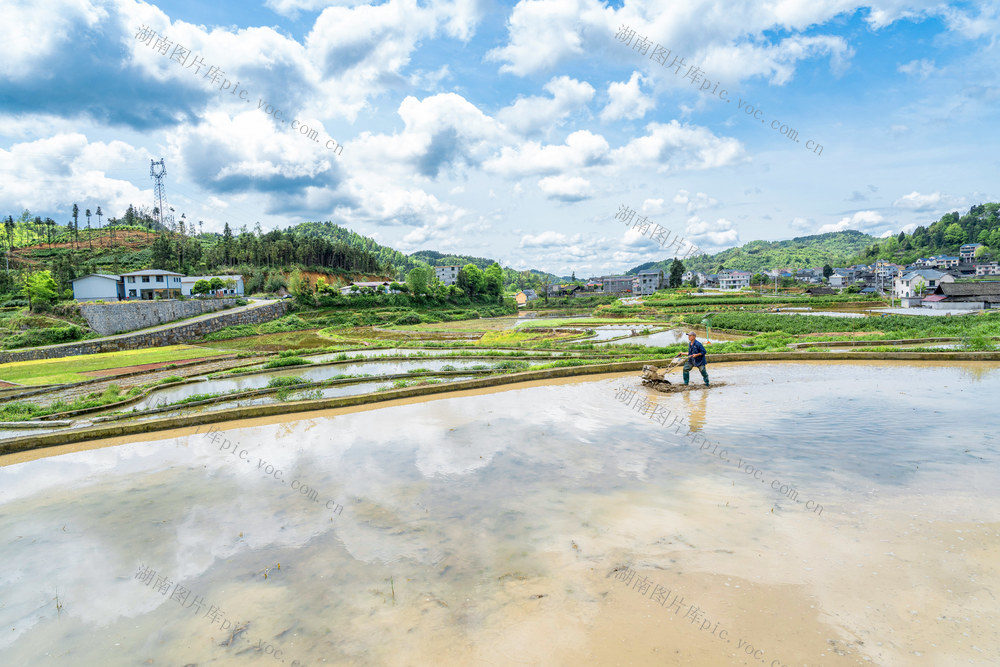 4月23日,吉首市马颈坳镇雅沙村,村民在田间忙着犁田蓄水,为水稻栽插和稻田养鱼做准备。该村是“稻花鱼之乡”,近年来农民尝到粮食、经济间作互补的甜头,因地制宜发展稻鱼间作产业。谷雨过后,当地进入水稻培育栽插时节,农民们抢抓农时犁田育秧、蓄水保水等,确保农田增效和农事增收。梁永鸿 摄