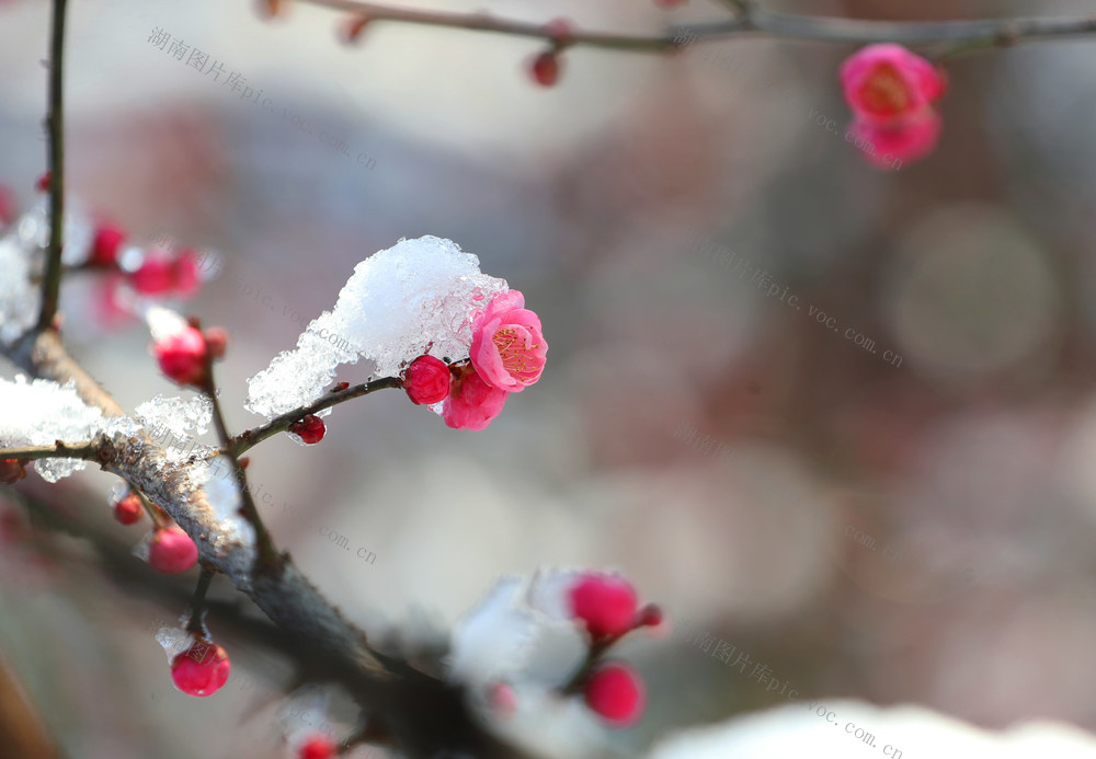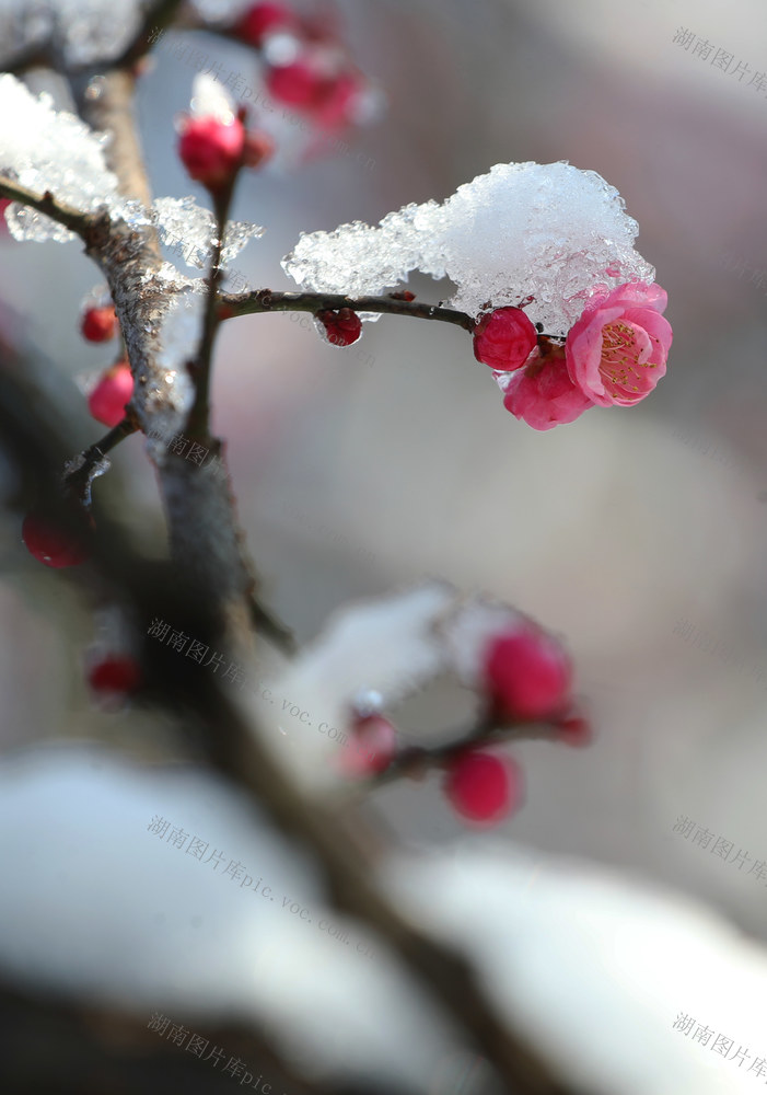 2024年1月23日,在湖南省衡阳市雁峰区南湖公园,梅花迎雪盛开,雅韵无穷。 (曹正平摄)