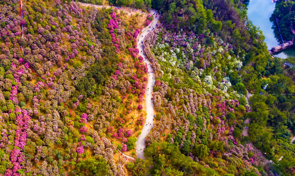 2024年2月17日,湖南省怀化市中坡国家森林公园300余亩山茶花相继盛开,进入最佳观赏期。繁花相伴,花海环抱,层层叠叠的山茶花缀满枝头,馥郁芬芳,千姿百态,争奇斗艳,引得不少游客结伴至此,流连在花前树下乐此不疲地拍照留影。