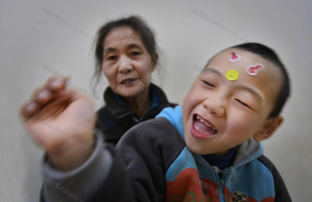 唐昆,2007年生,肢体残疾,凤凰县人。2014年4月份来长沙治疗,目前由70多岁的奶奶杨书爱照顾,父亲在朋昆6个月时就因病去世,之后母亲离家出走再无音讯。 李健 摄