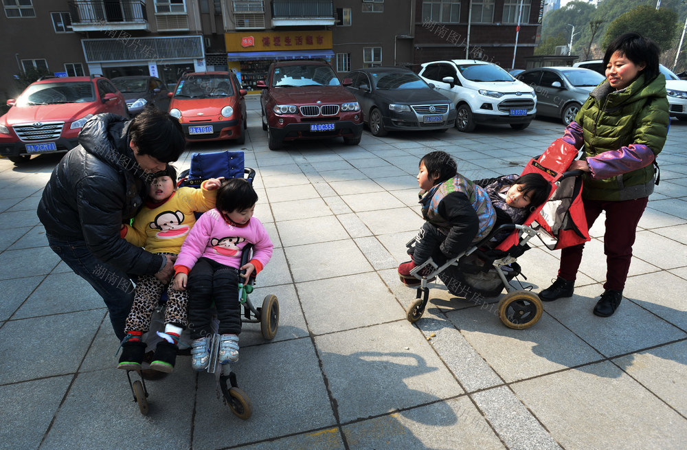 2015年2月6日下午,像朱冬文这样双胞胎都是脑瘫女儿的,在这里坚持治疗的还有好几对,他们有些都是来自偏远的山村。 李健 摄