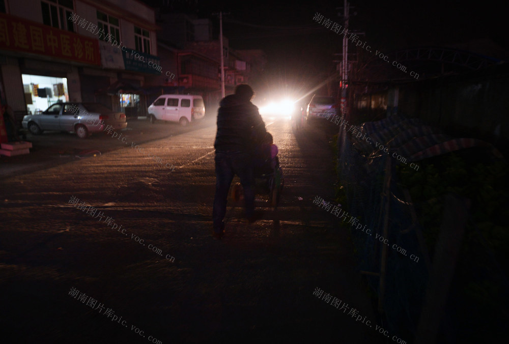 2015年2月6日晚上,朱冬文推着轮椅走在回家的路上。令人欣慰的是,不少孩子和家长像朱冬文一样选择了坚持,忍受着孤独、压力,那轮椅在村落和医院之间转动,未曾停止,直到孩子涅磐重生、成长。 李健 摄