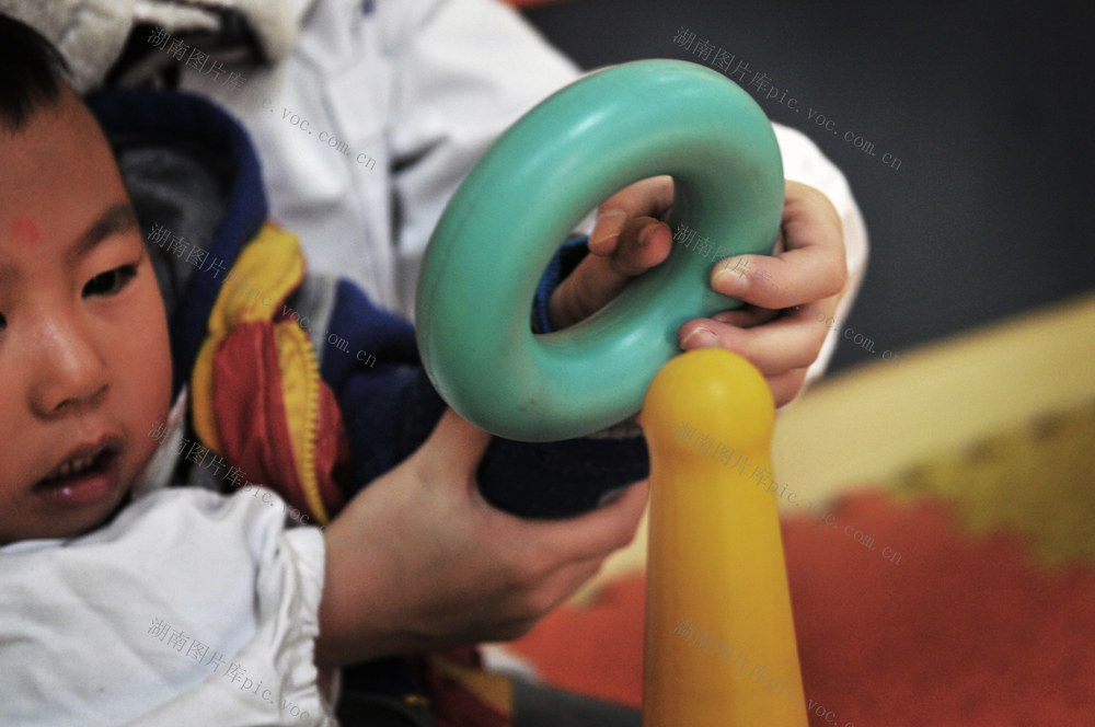 一名小孩在康复治疗师的帮助下练习手部活动。孩子将整碗的饭倒在新来老师脸上;做跳舞操时,小孩控制不住,砸到老师嘴唇。这些康复治疗师都曾经历过,能坚持的都留下来了。 李健 摄