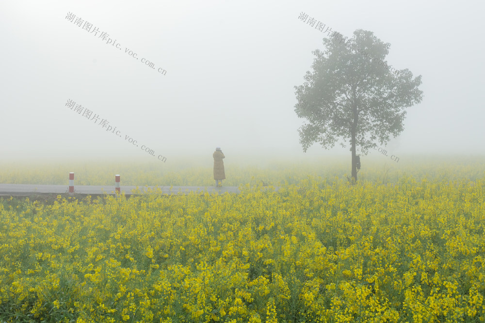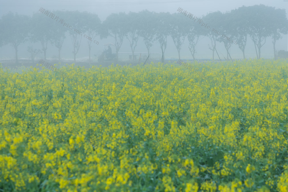 2024年3月19日,湖南浏阳,旧雨初晴,清晨的浏阳河畔晨雾迷漫,几千亩油菜花绽放在春天里。贺再亮摄