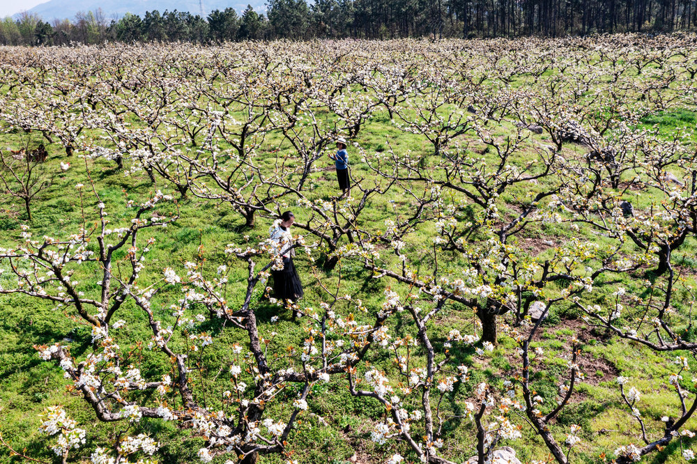 3月26日,东安县南桥镇岩门村,雪白的梨花竞相绽放,吸引不少游客前来踏春赏花。近年来,该镇利用土壤和气候优势,采取“大户+合作社”模式,开发山地种植翠冠蜜梨2000余亩,成为远近闻名的“翠冠蜜梨”小镇,年产蜜梨800万斤,利润达1200万元,带动100余名农民就业增收,为乡村全面振兴注入源动力。