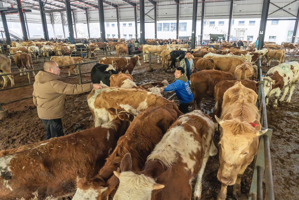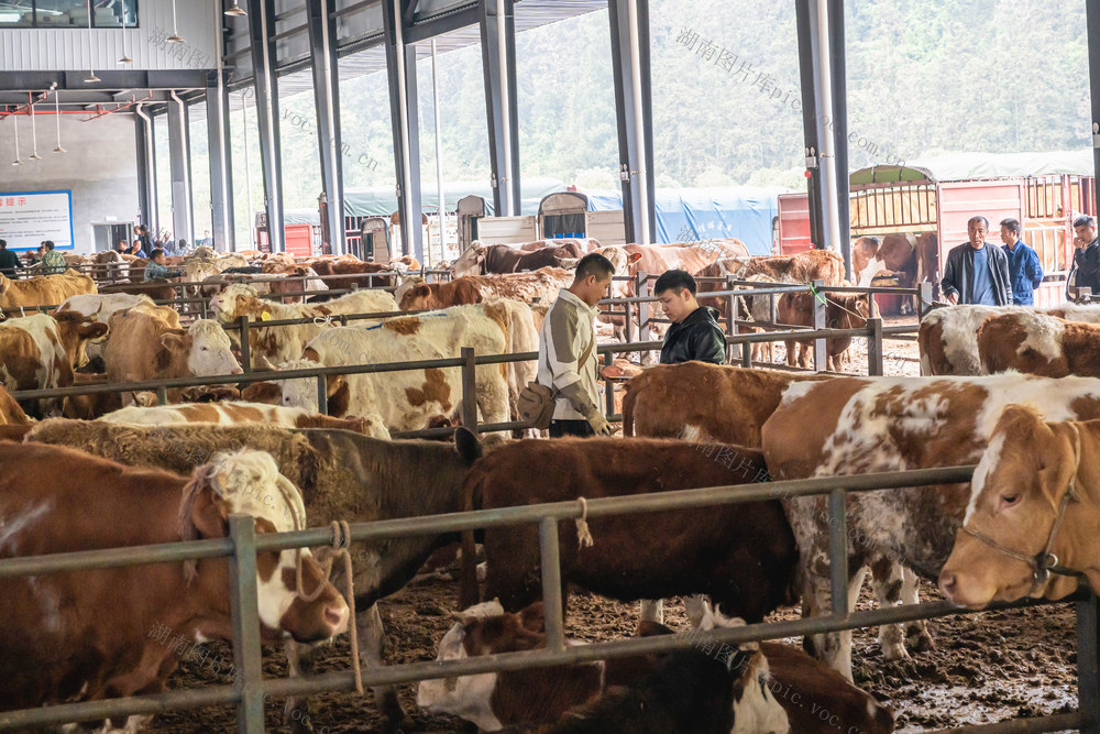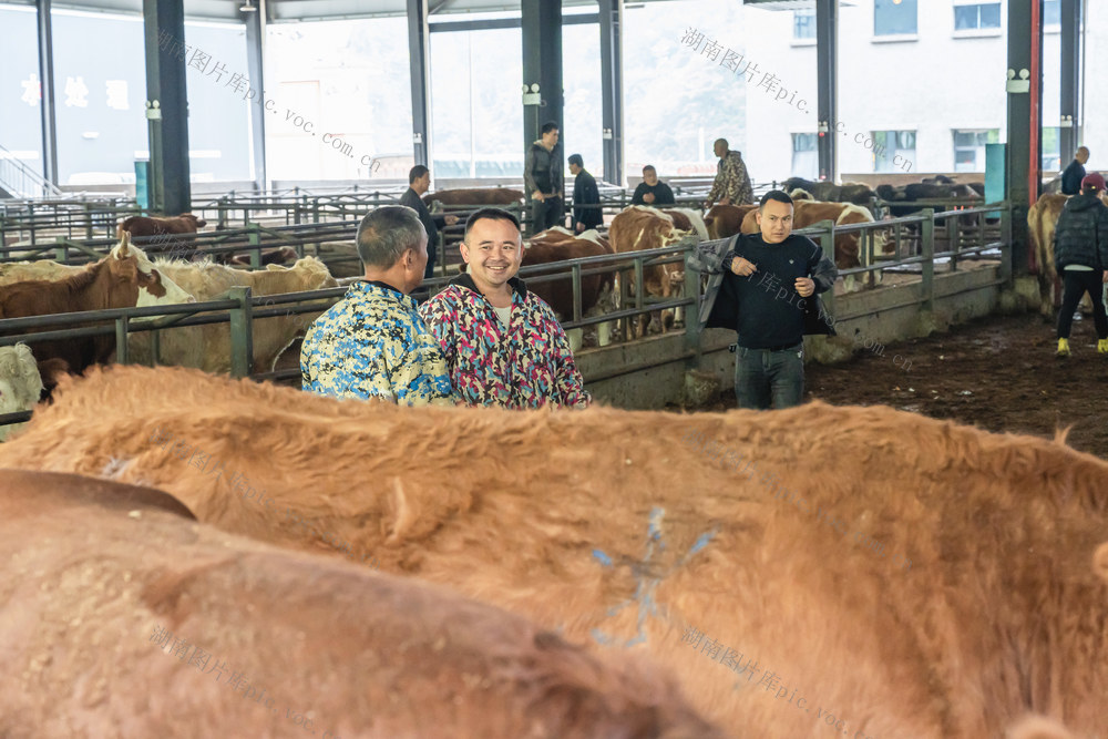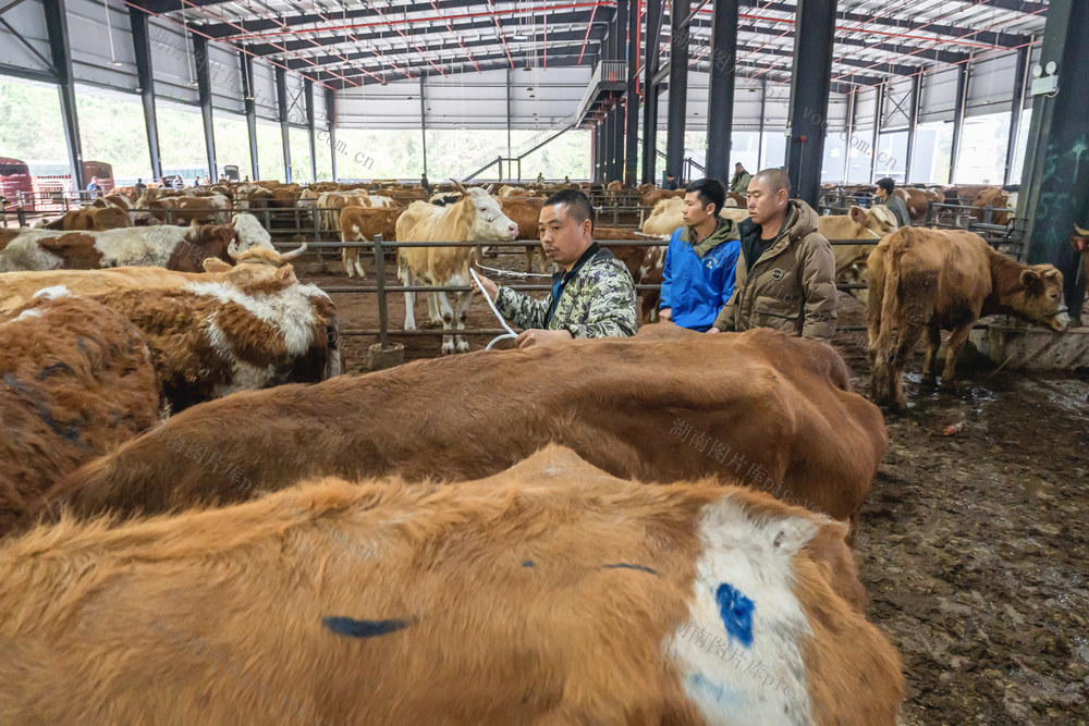 4月11日,吉首市乾州街道西门口,湘西活牛交易大市场逢交易日,人们在忙着牛市交易。