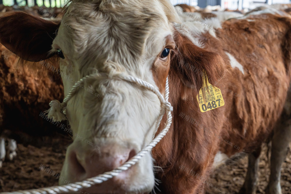 4月11日,吉首市乾州街道西门口,湘西活牛交易大市场逢交易日,每头牛都带有检疫标牌。