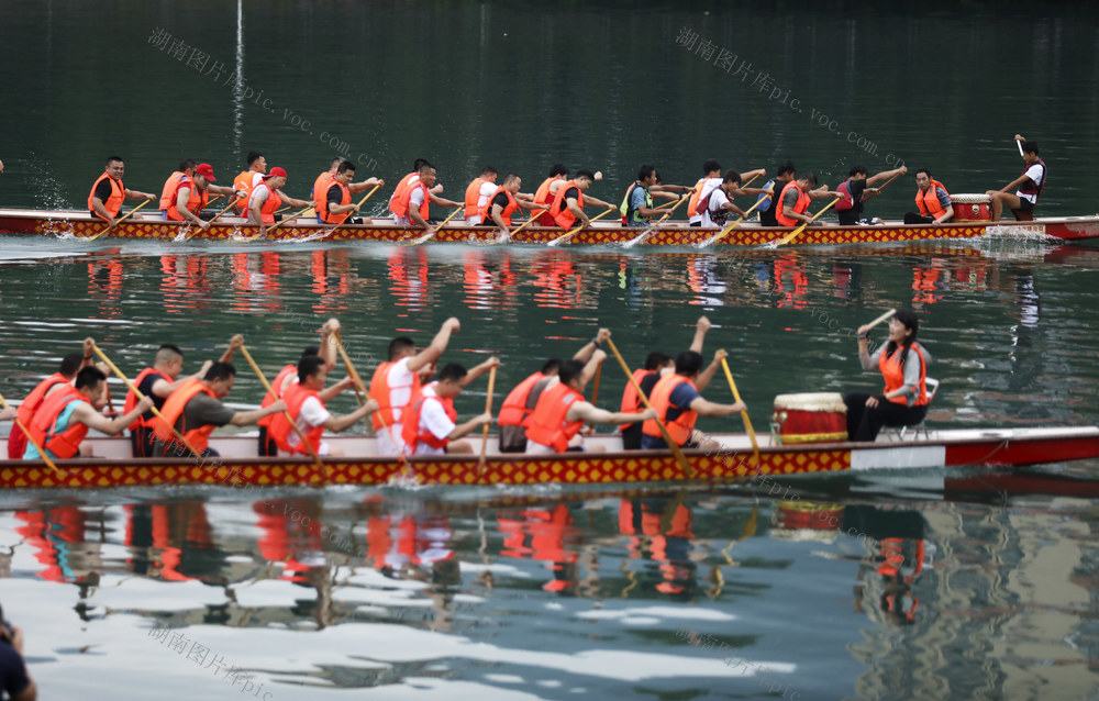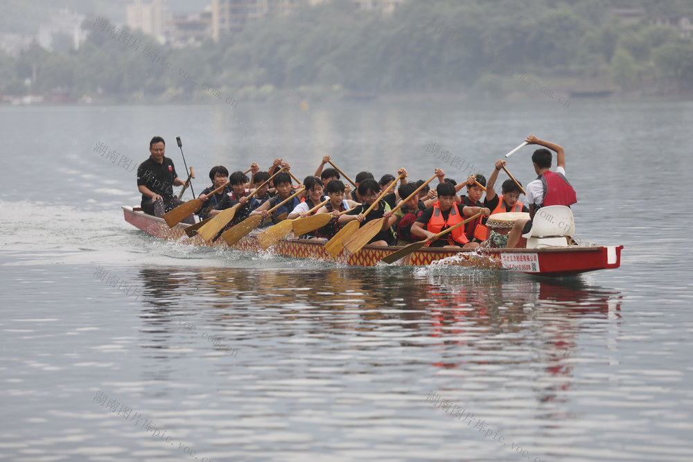 2024年6月3日,龙舟代表队在省资兴市东江湾水域练习龙舟。 李科 摄