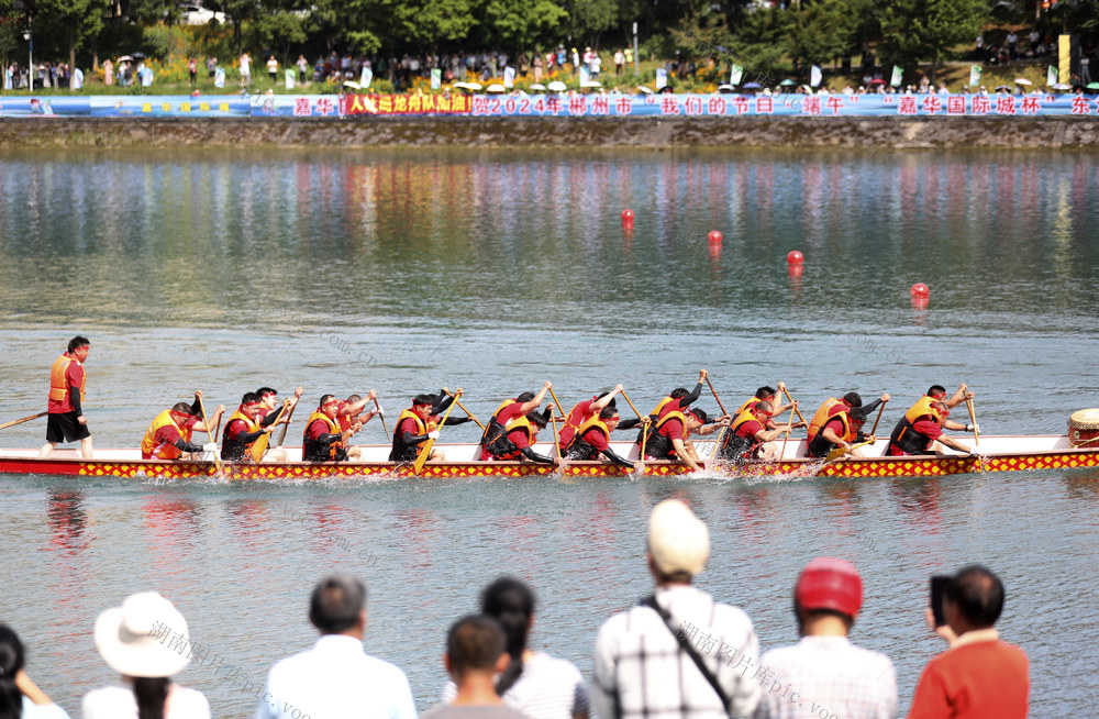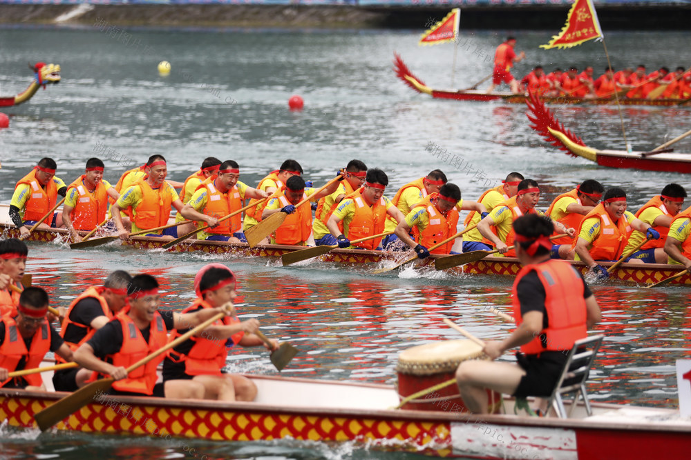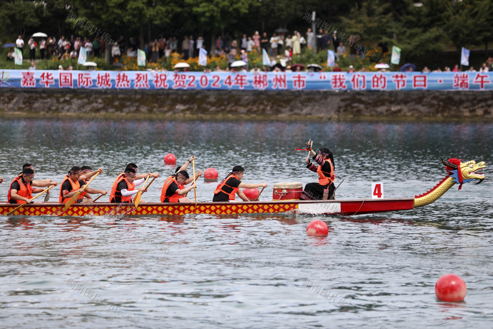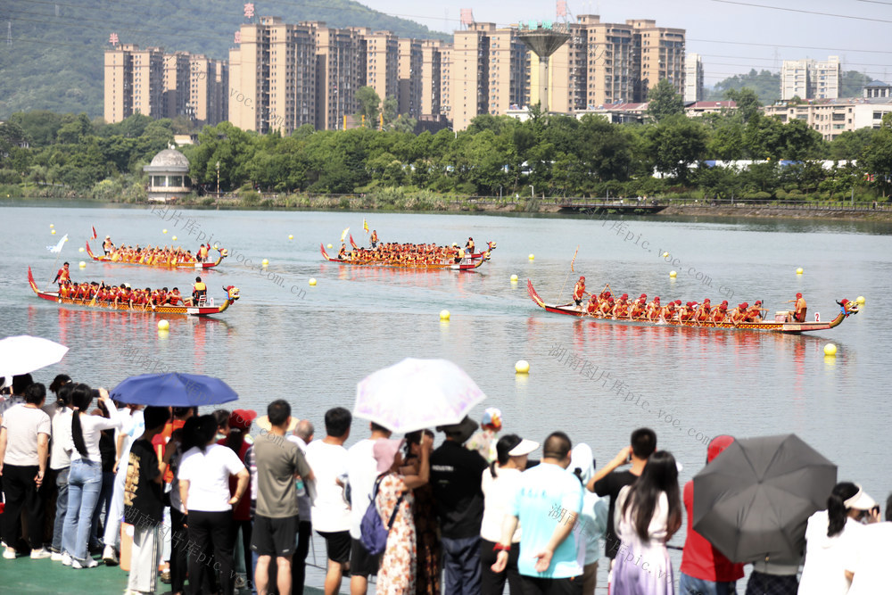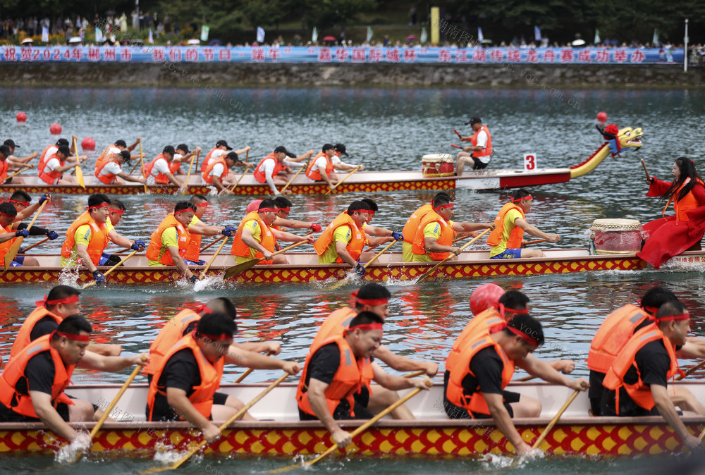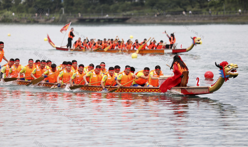 6月7日,各龙舟代表队在资兴市东江湾水域进行比赛。(李科 何洪海 摄)
