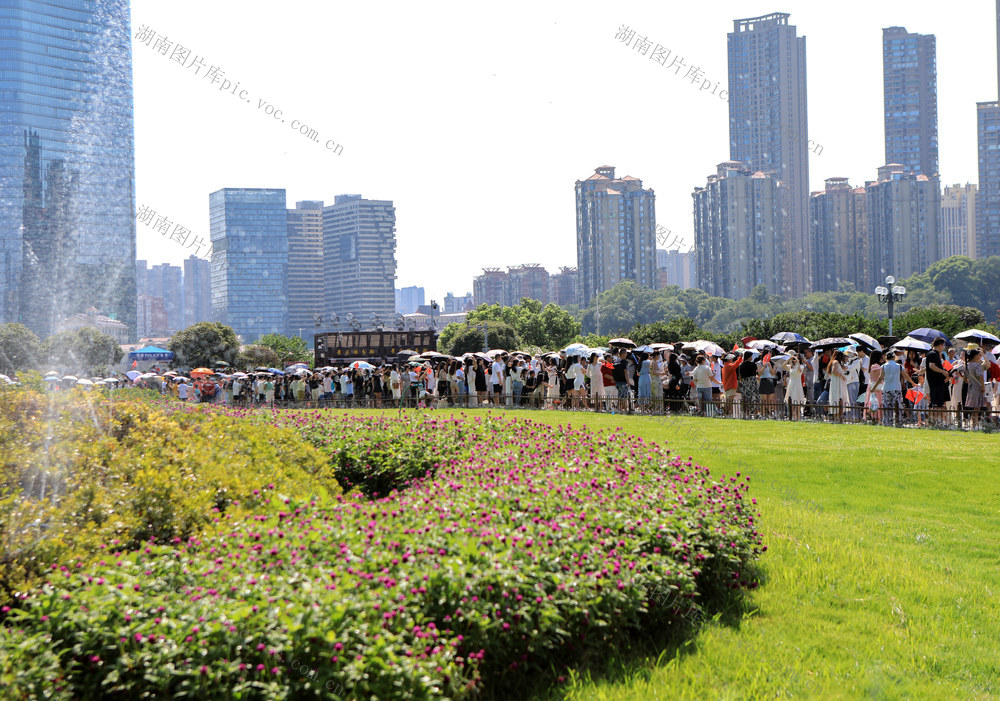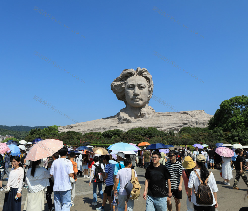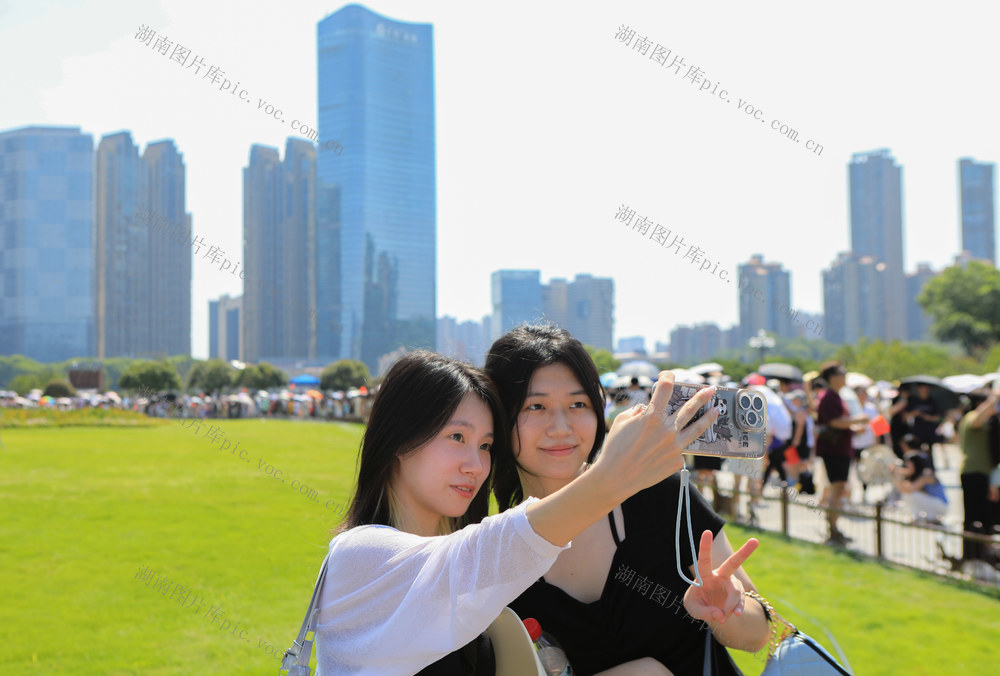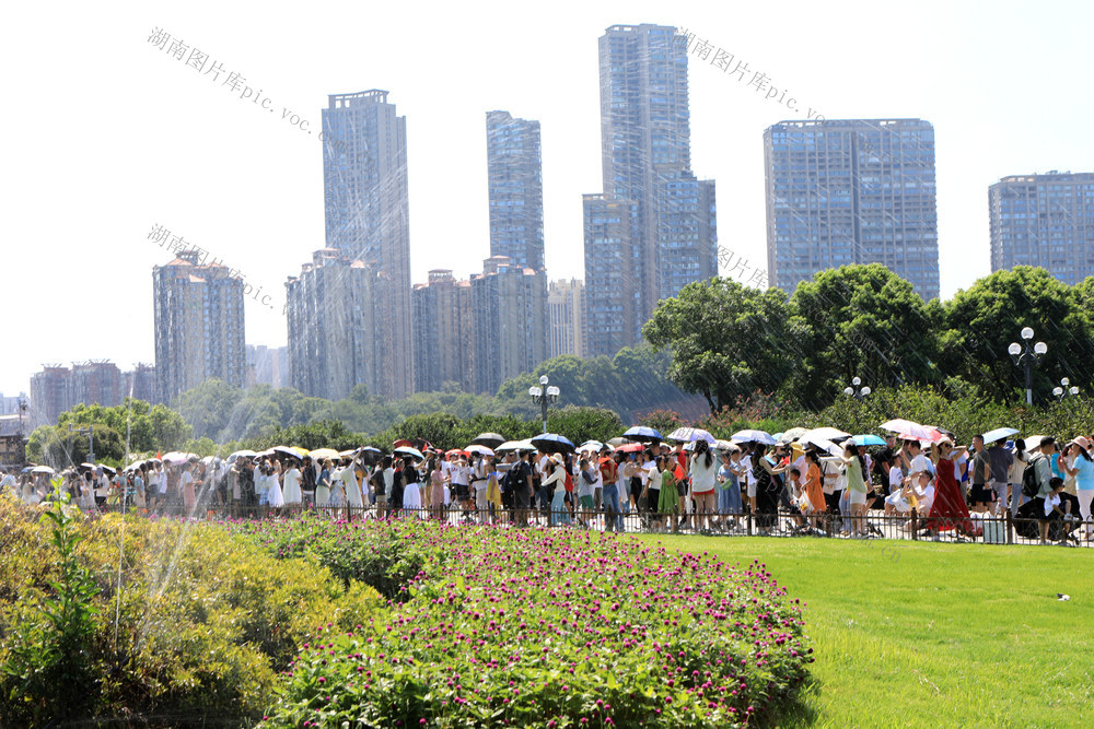 2024年8月24日,游人在长沙橘子洲景区游览拍照。林道辉 摄