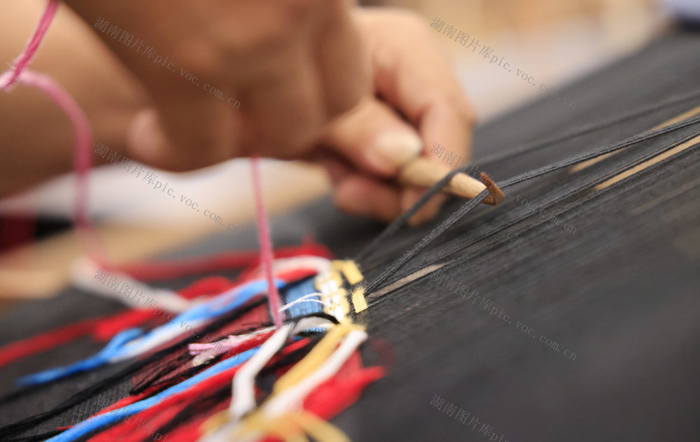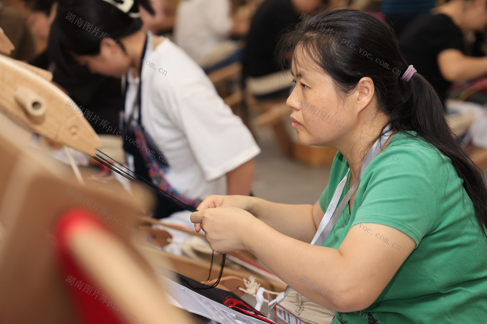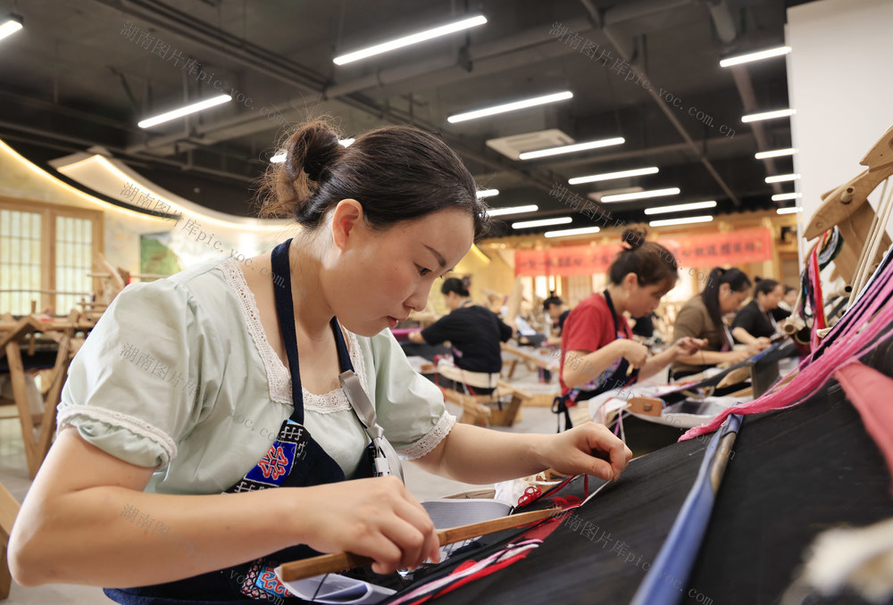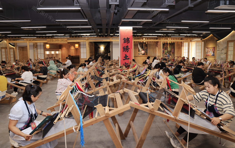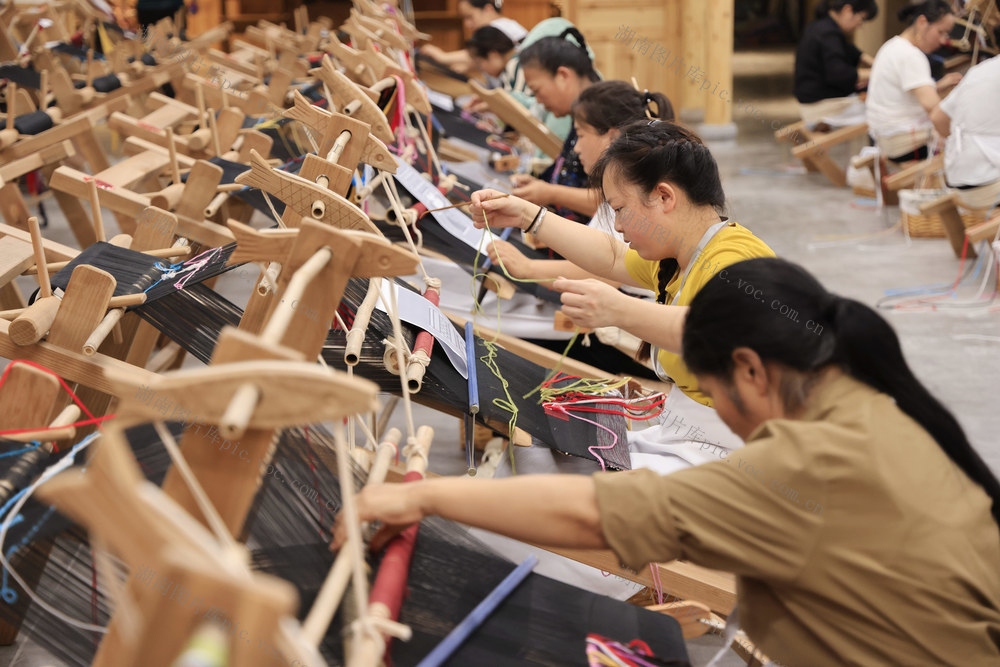 2024年9月20日,在张家界市“乖幺妹”土家织锦文化创意园,织锦女工进行土家族织锦技能大赛。吴勇兵 摄