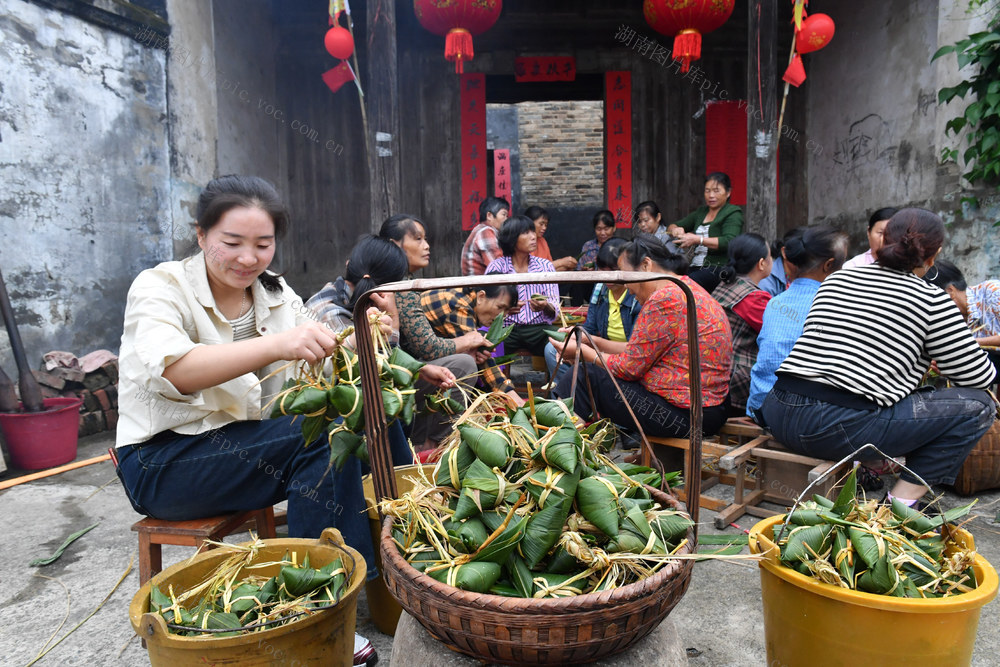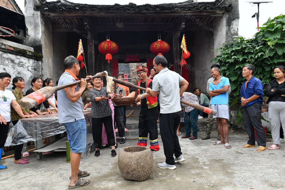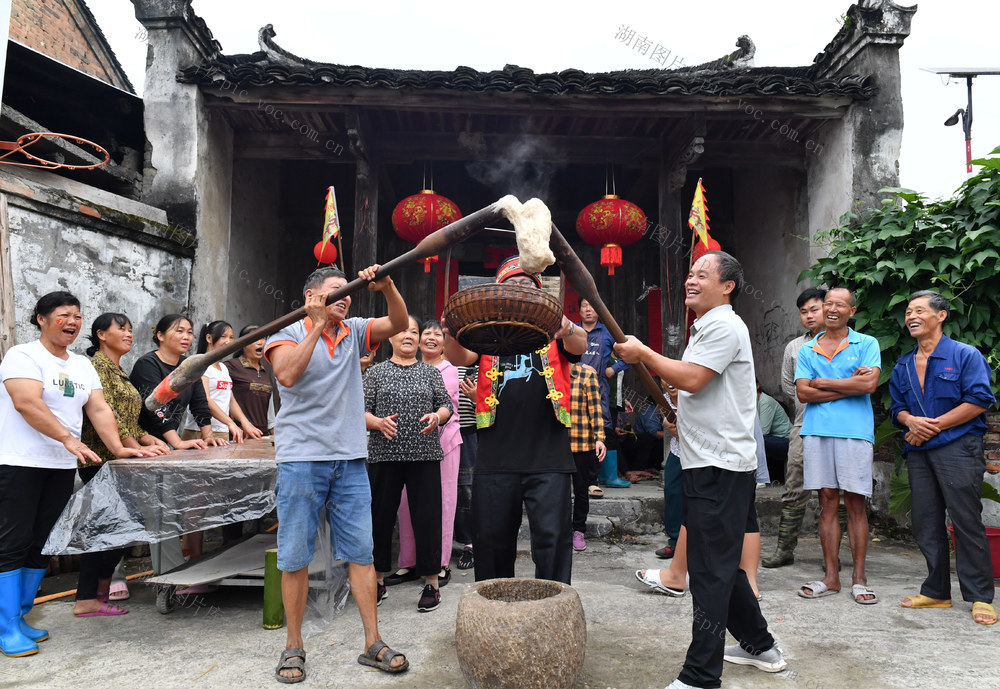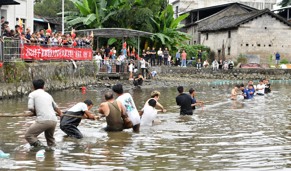 10月1日,江永县千家峒瑶族乡千家峒瑶族乡管家村刘家源自然村的瑶胞打糍粑、包粽子、在村前一口池塘里进行拔河、抓鸭、捕鱼等项目的比赛活动,庆祝新中国成了75周年。 黄海 摄