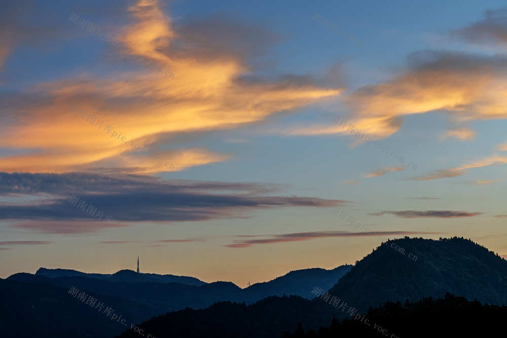 10月15日清晨的南岳,天上的云绚丽多彩,形态各异,映照出天空的浩瀚与平静。 陈经国 摄
