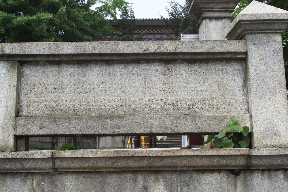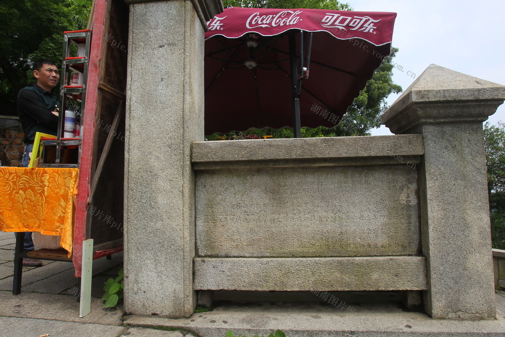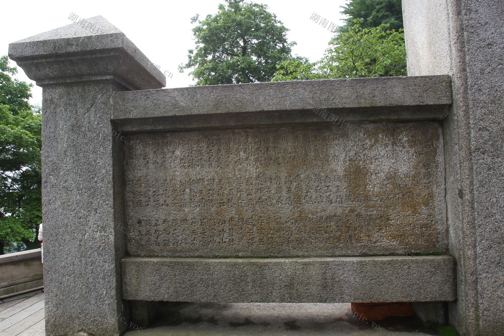 2014年4月27日,长沙市岳麓山抗日阵亡将士名录。云麓宫前坪的麻石围栏上,刻有5000多个抗日阵亡将士的名字,都是在长沙会战中英勇献身的烈士。刻有名录的碑栏一共有十几块,密密麻麻地刻满了人名。有的还很清晰,但有的名字已经风化难以辨识。这些名字本应该是在墓园的,为什么会出现在这里。可能是文革中被捣毁,废物利用用来砌了围栏。张京明摄