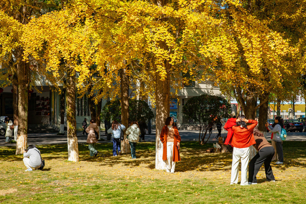 近日,吉首大学的银杏树叶金黄璀璨,成为校园内一道亮丽的风景线。众多学生和游人被这秋日的美景吸引,纷纷前来打卡拍照,共同记录这份季节的馈赠。石雪源 杨燕萍 摄