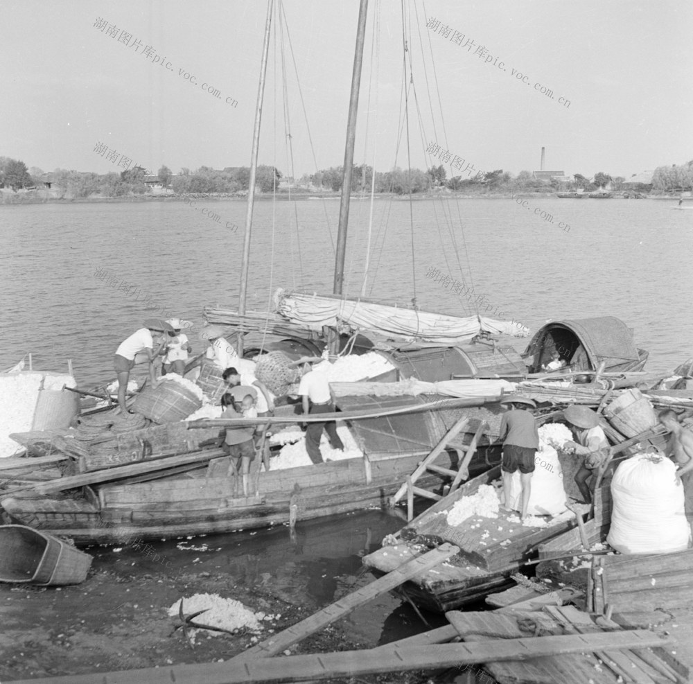 1963年8月,(常德市)汉寿县西湖垸的洲口,酉港,鸭子港,坡头等六个公社今年棉花丰收,社员们踊跃交售新棉,支援国家建设。这是洲口公社和鸭子港公社的社员在送售棉花。唐又庭 摄