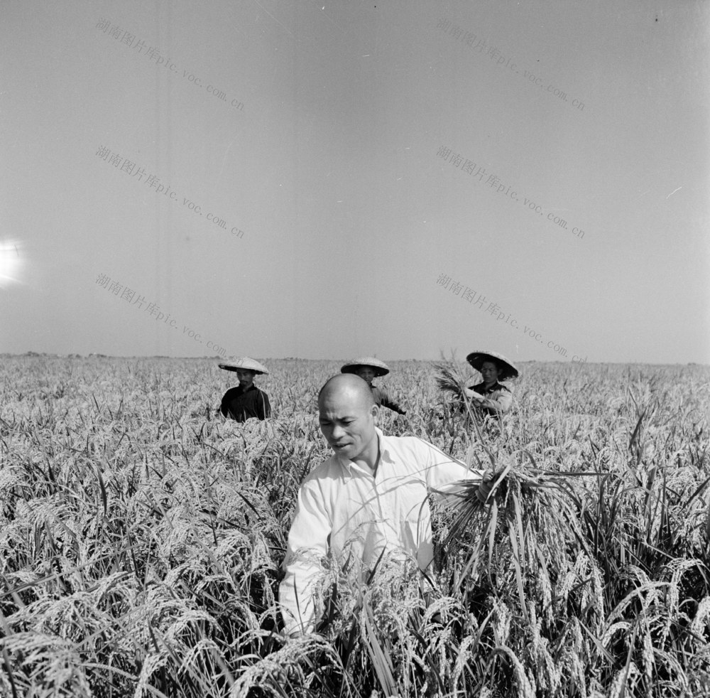 1963年8月,(常德市)汉寿县洲口公社小港大队第十二生产队的社员在晚稻田里精选良种,为明年丰收作好准备。唐又庭 摄