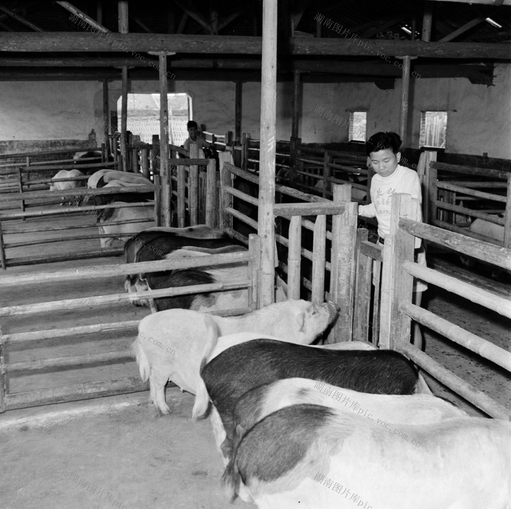 1963年9月,(常德市)汉寿县西湖垸六个公社全年上交牲猪任务2975头,到九月十号止就完成了全年上交任务的96.3%头。图为汉寿县肉食水产公司坡头转运站给收购进来的牲猪催肥。唐又庭 摄