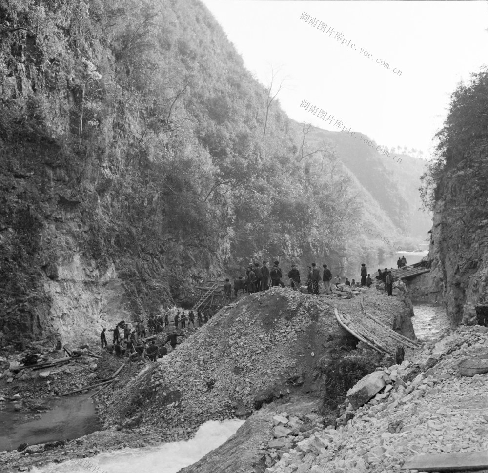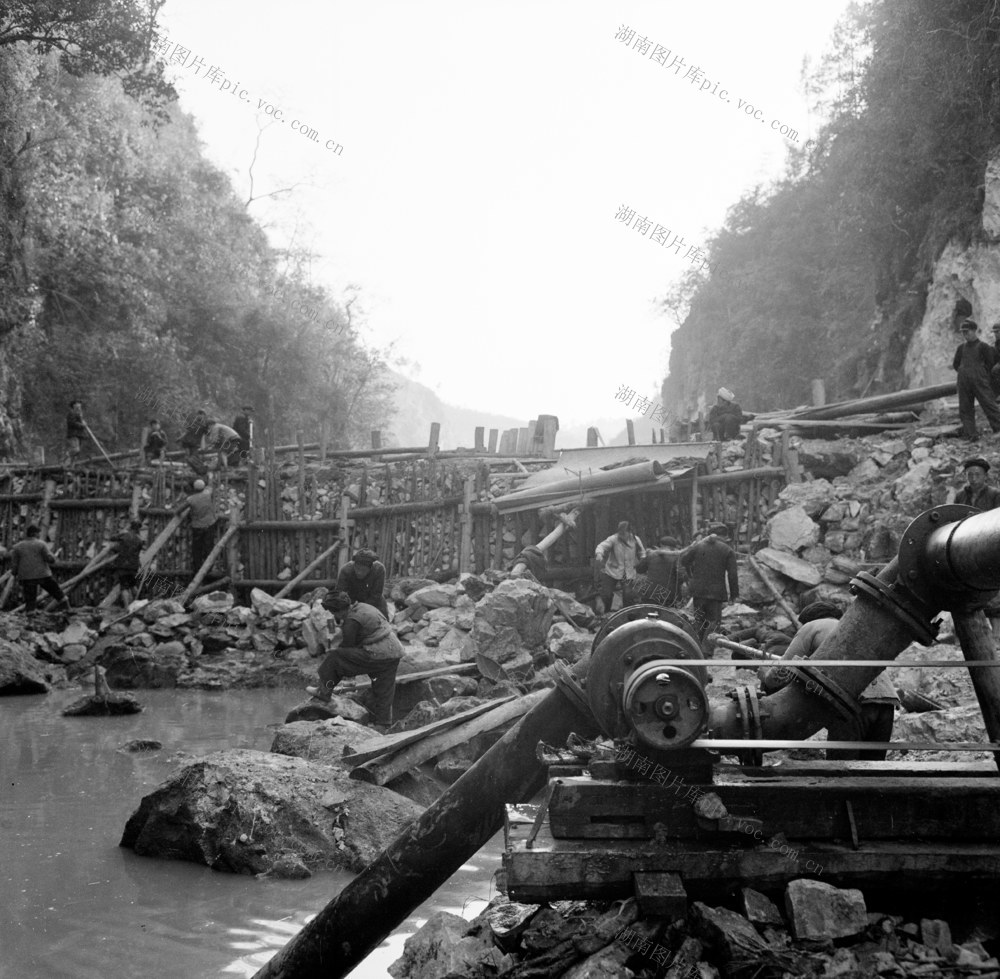 1965年1月,花垣县下寨河隧洞引水工程拦河坝工地。刘振国 摄