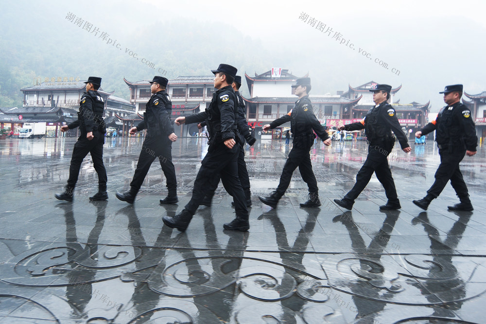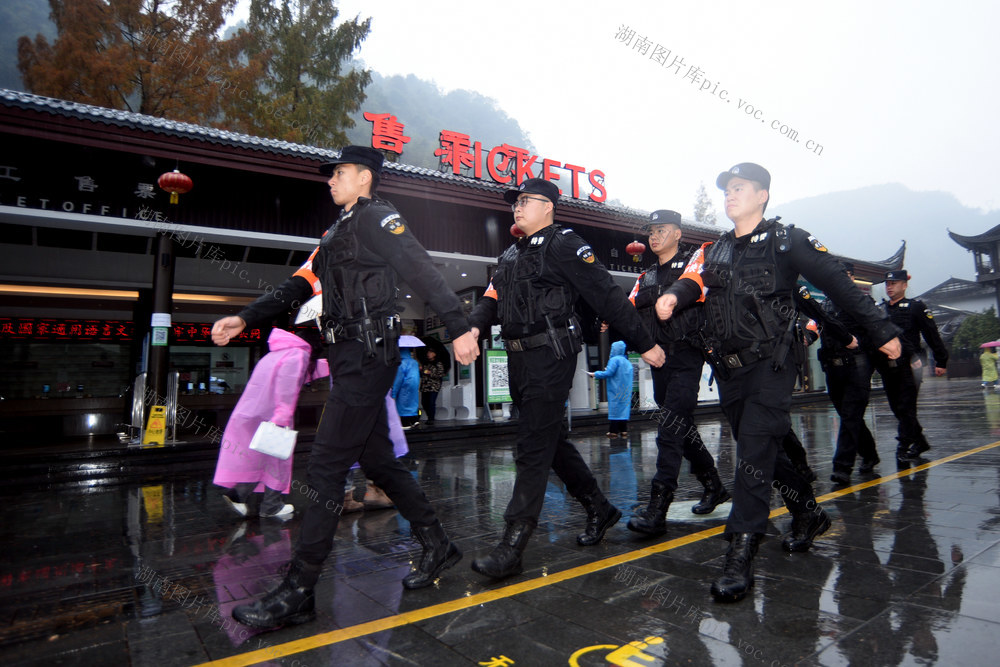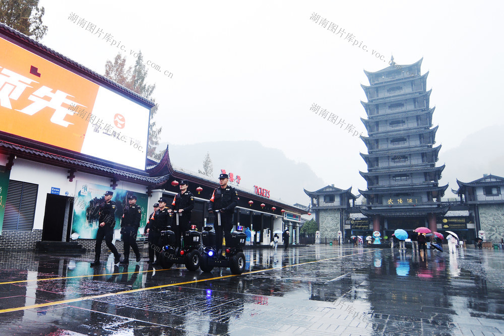 4月26日,张家界市武陵源景区,民、辅警在治安巡逻。黄春涛 贺林 摄