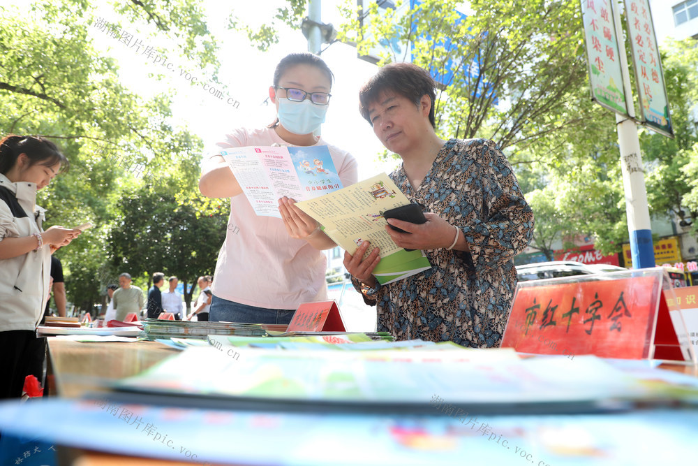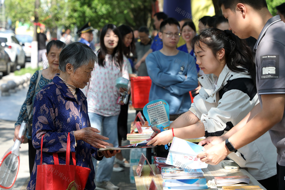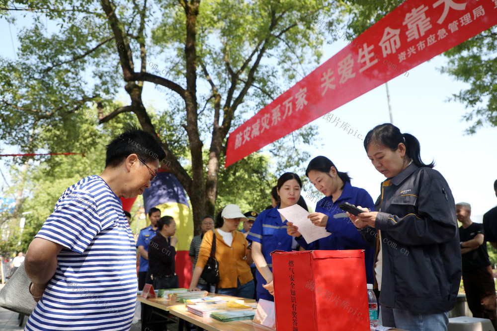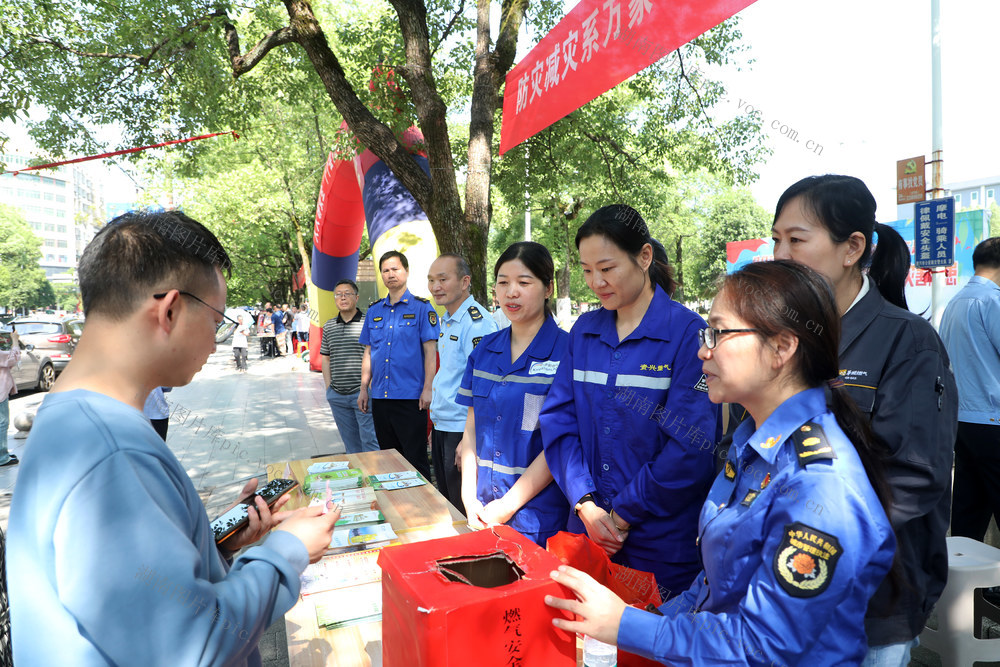 5月12日,在资兴市人民广场,工作人员向民众普及防灾减灾知识。(李科 摄)