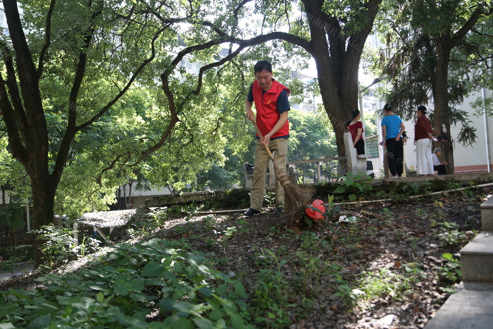 6月26日,资兴市唐洞街道民生北路社区三片区党支部组织党员开展清扫社区垃圾行动,用行实际行动迎接中国共产党成立104周年。(欧祖生)