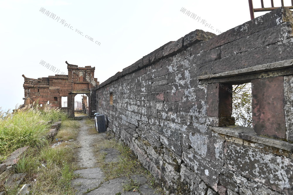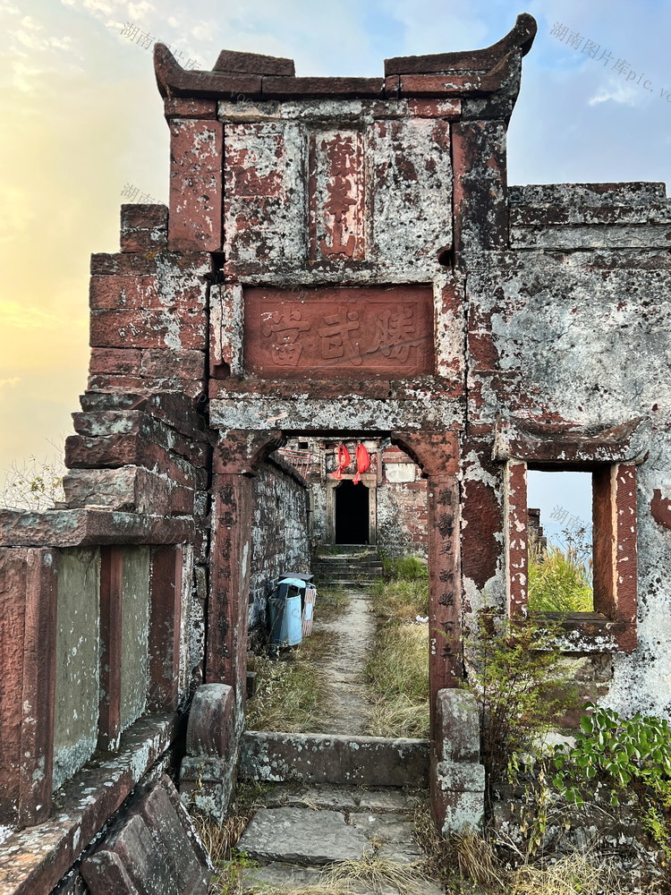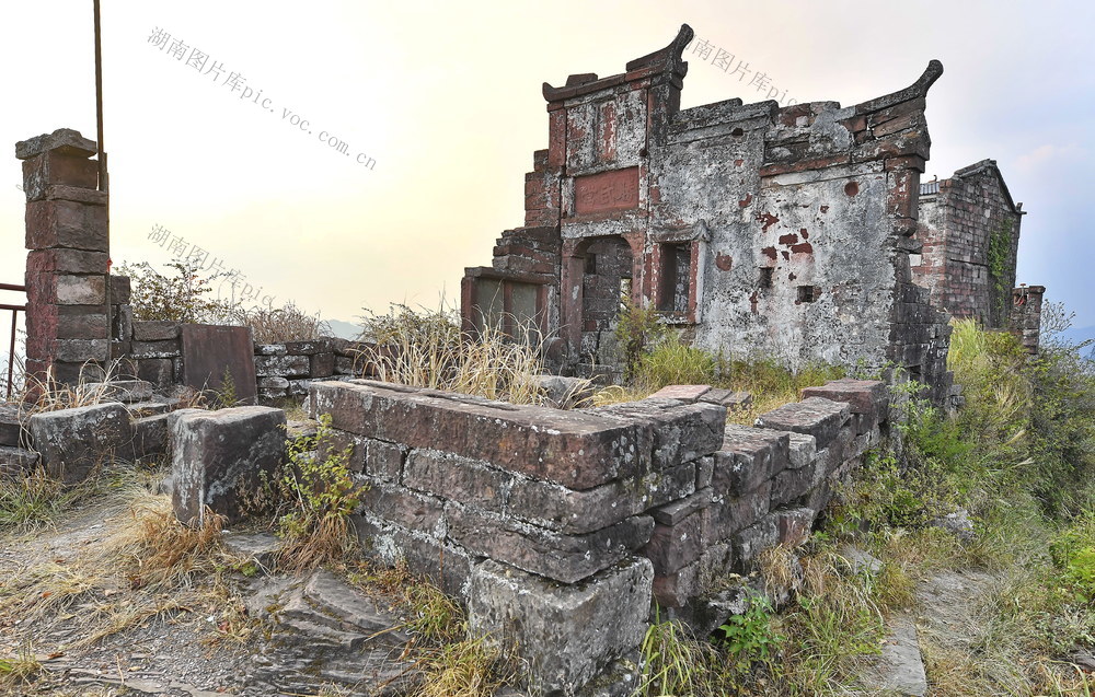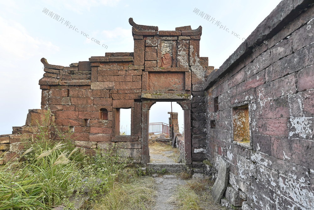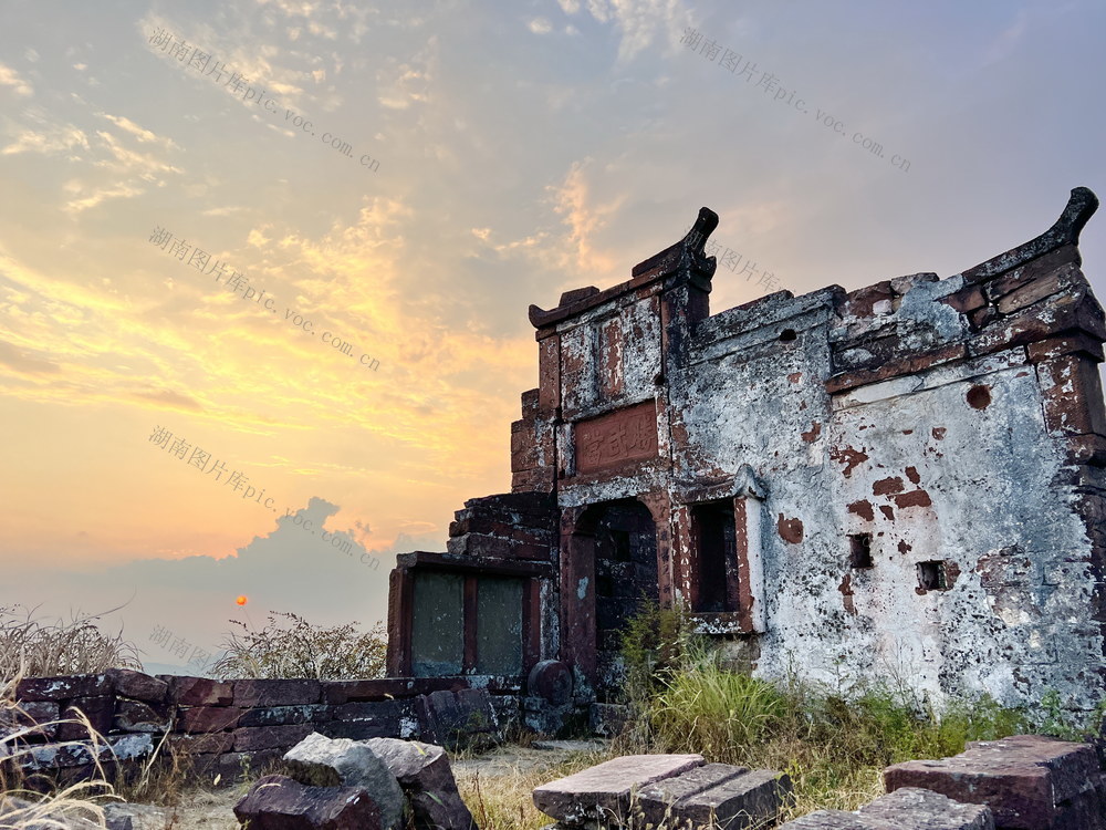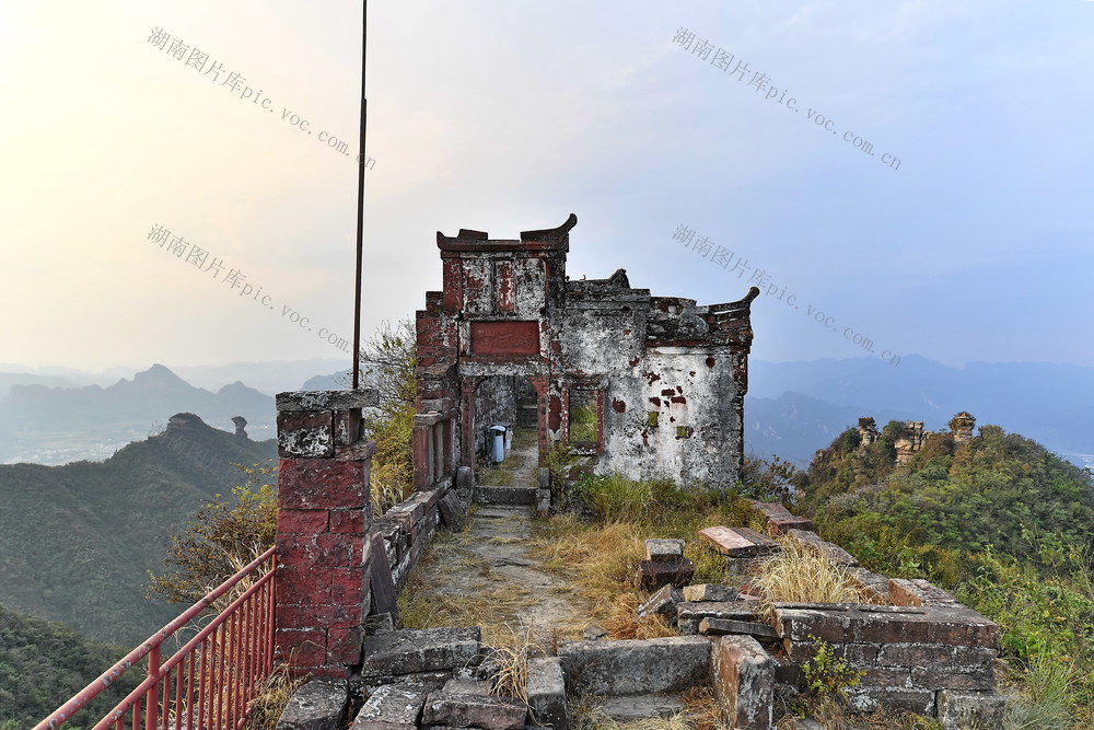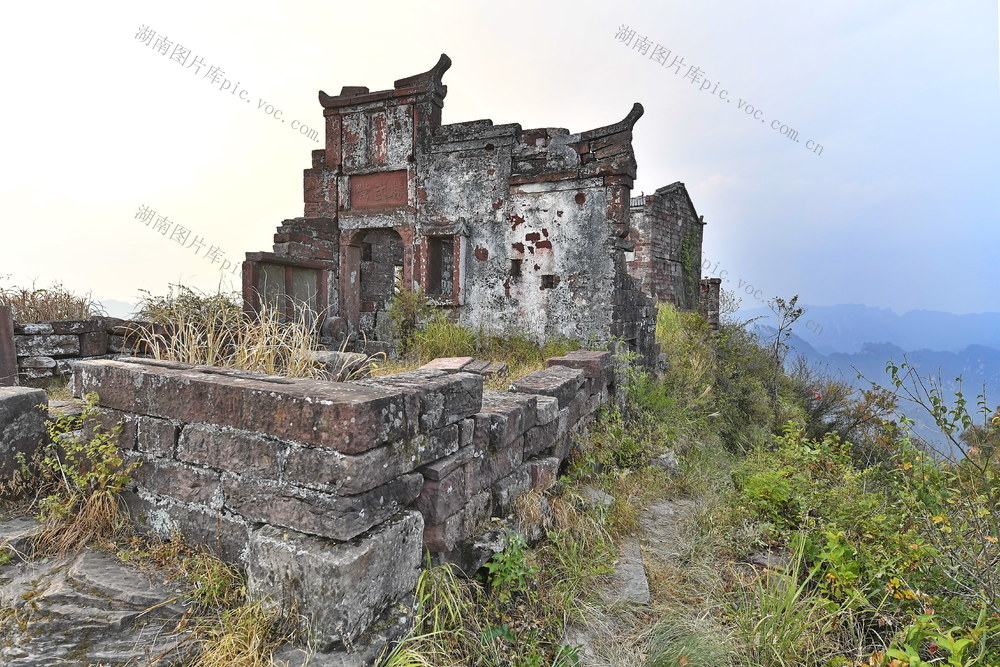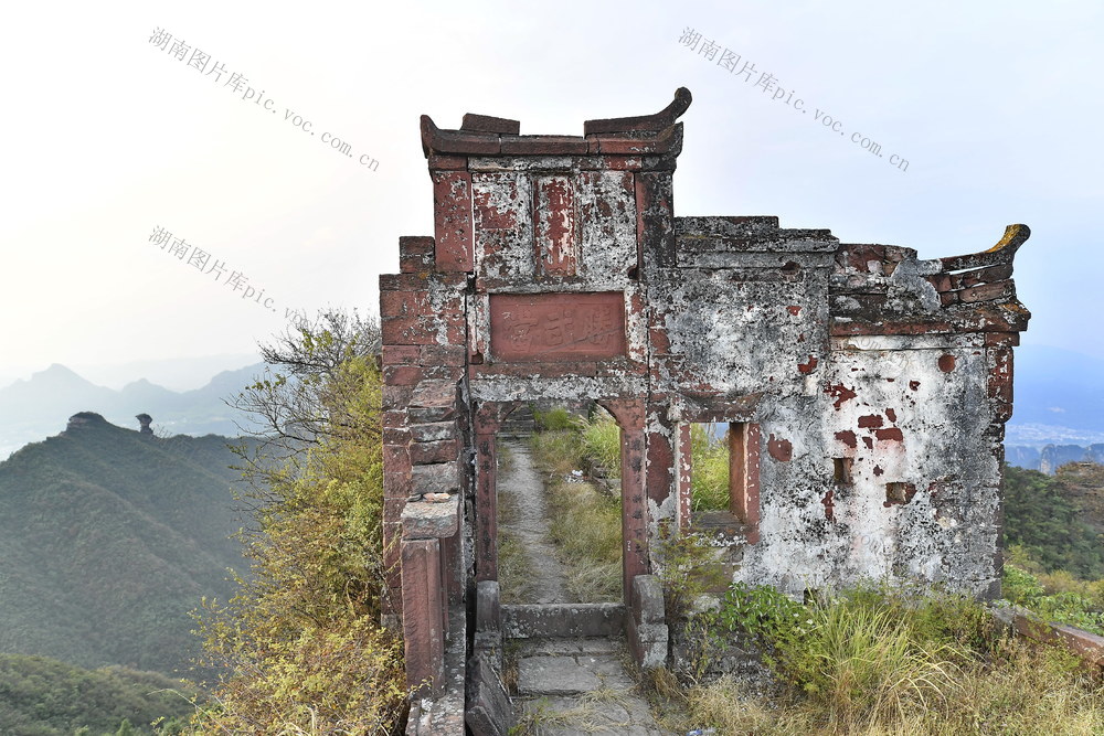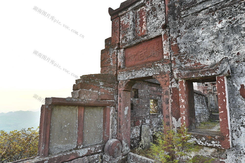 2022年9月12日,张家界市武陵源区协合乡山顶的宝峰山寺,其建筑碑刻显示这处遗址修建于清朝道光年间,距今约有170多年历史。 童迪 摄