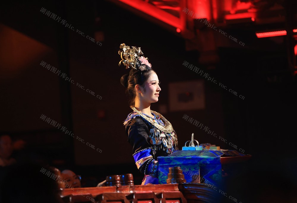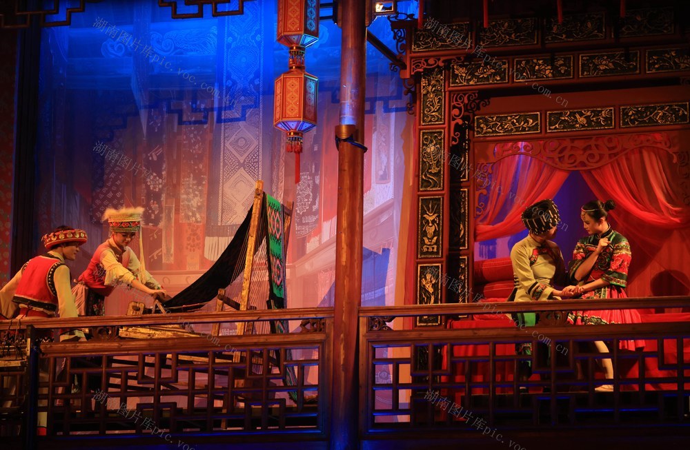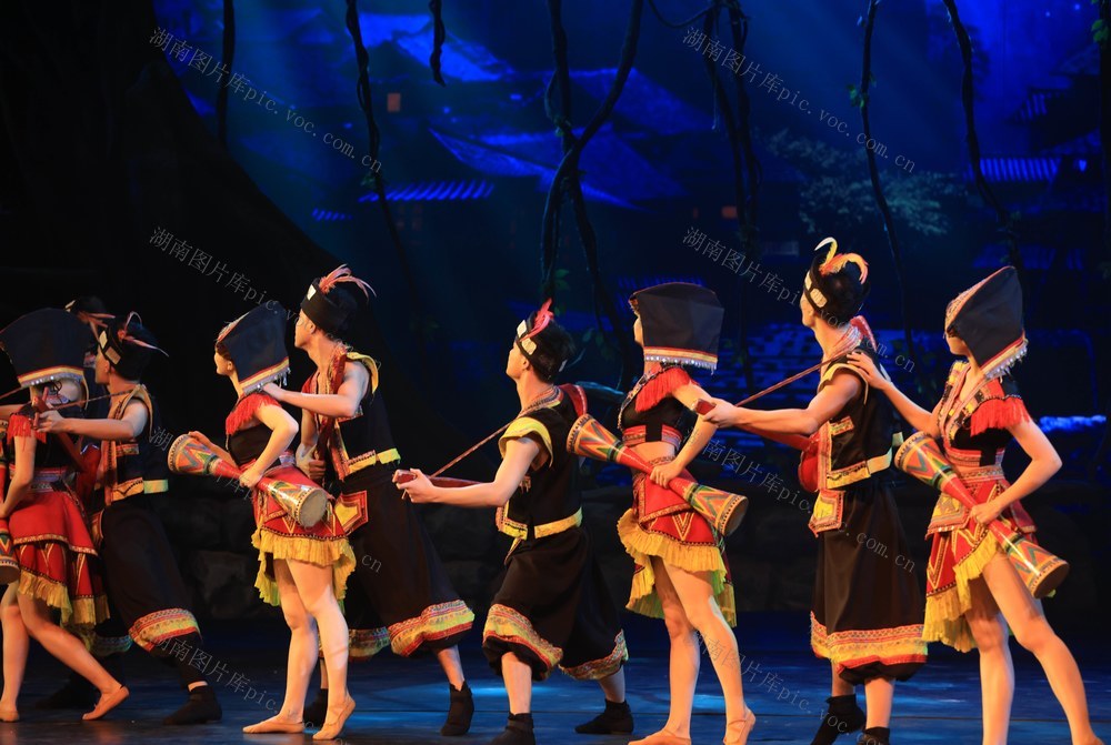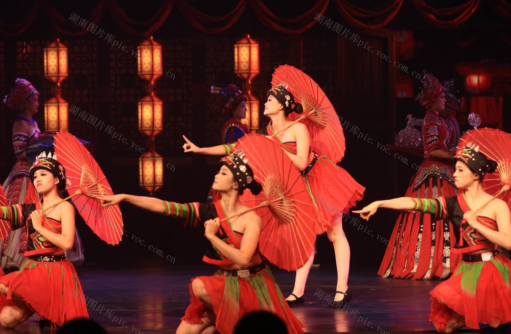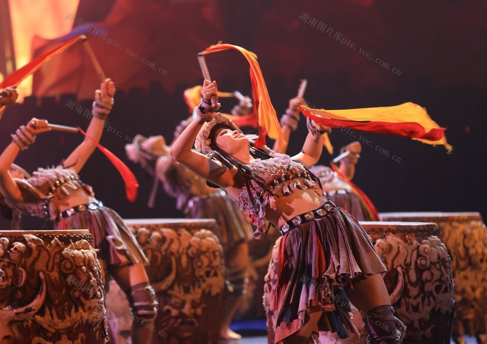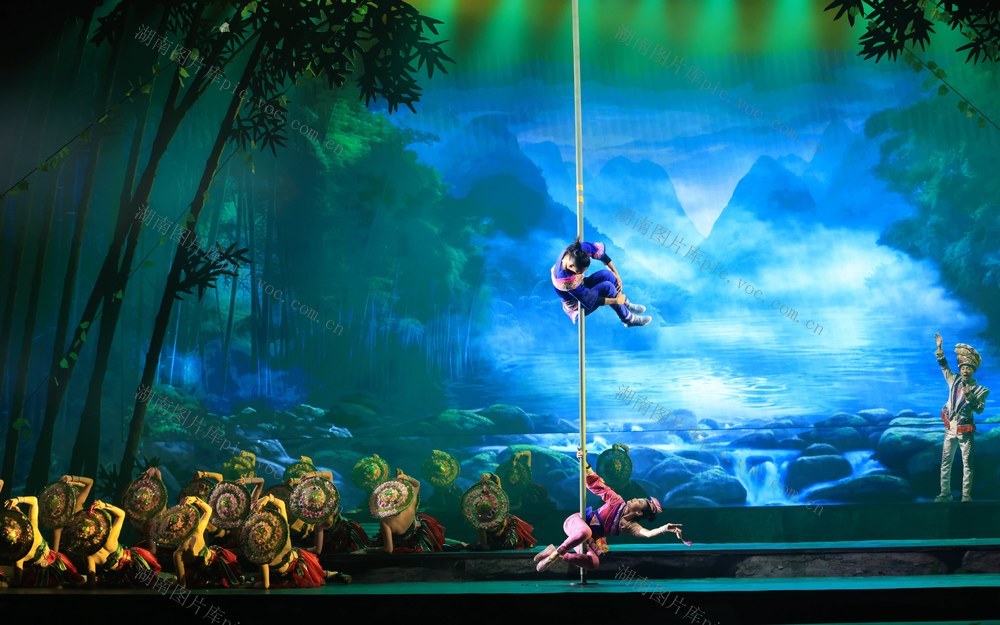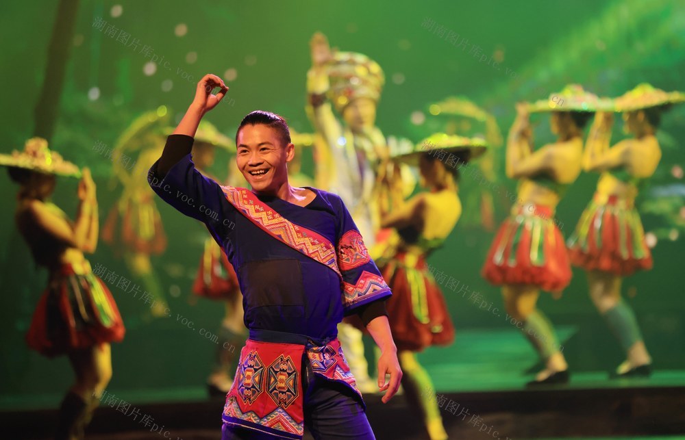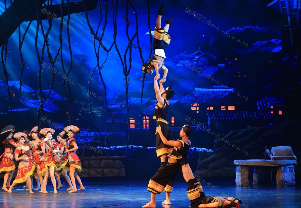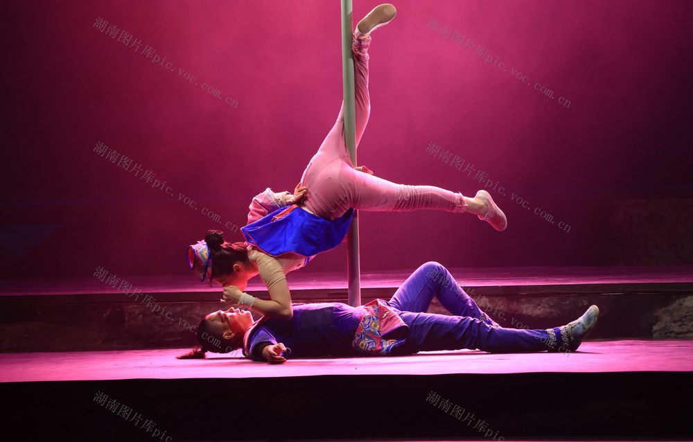 7月26日,湖南张家界《魅力湘西》艺术团的演员在表演节目。吴勇兵 摄