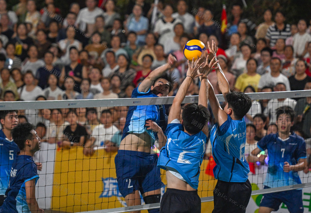 2025年7月29日晚,第三届湖南省“东江村排·益丰杯”乡村排球邀请赛在常德市武陵区东江街道新坡社区落幕,来自北京、湖南等地的16支排球队伍参赛。郭立亮 摄