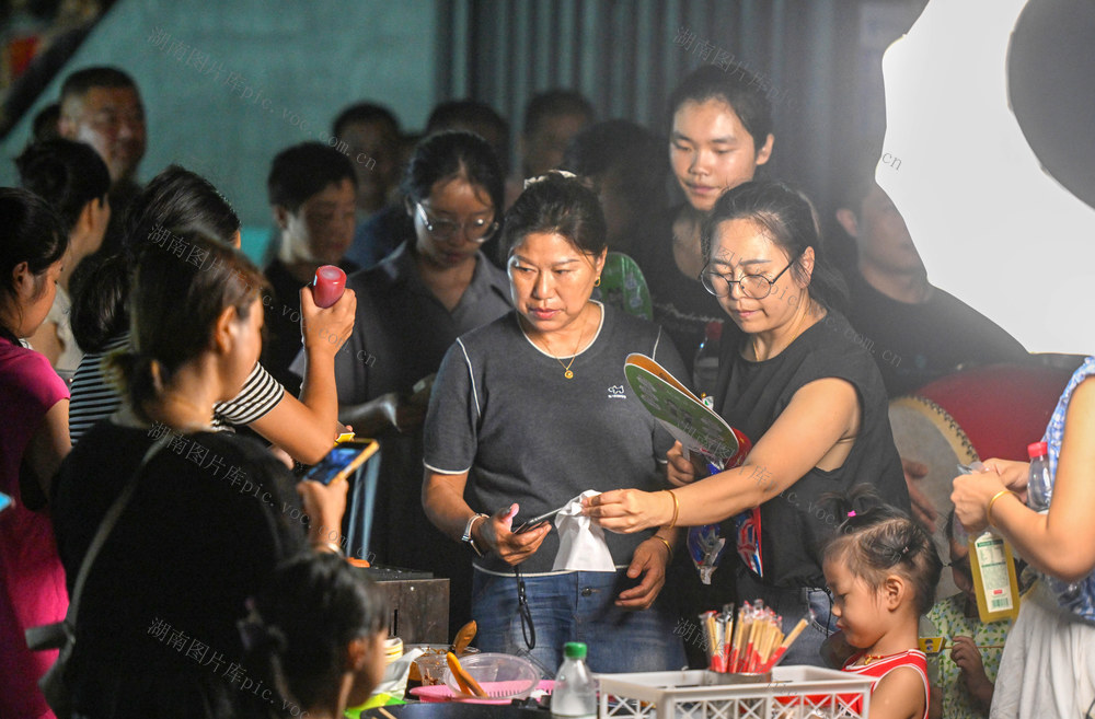 2025年8月6日晚,桃源县茶庵铺镇篮球公园,村民在赛场外购买当地美食。郭立亮 摄
