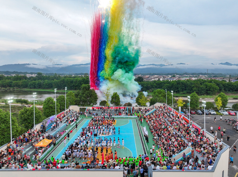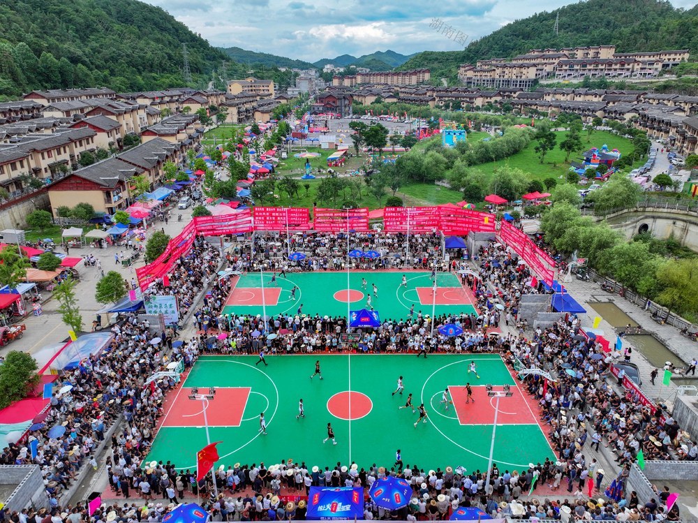 2025年6月30日,凤凰县禾库镇红安社区,2025年凤凰禾库“村BA”篮球赛激情开赛,吸引了湘、渝、黔、鄂四省(市)边区的24支乡镇代表队和13支自由组合队参赛。郭立亮 摄