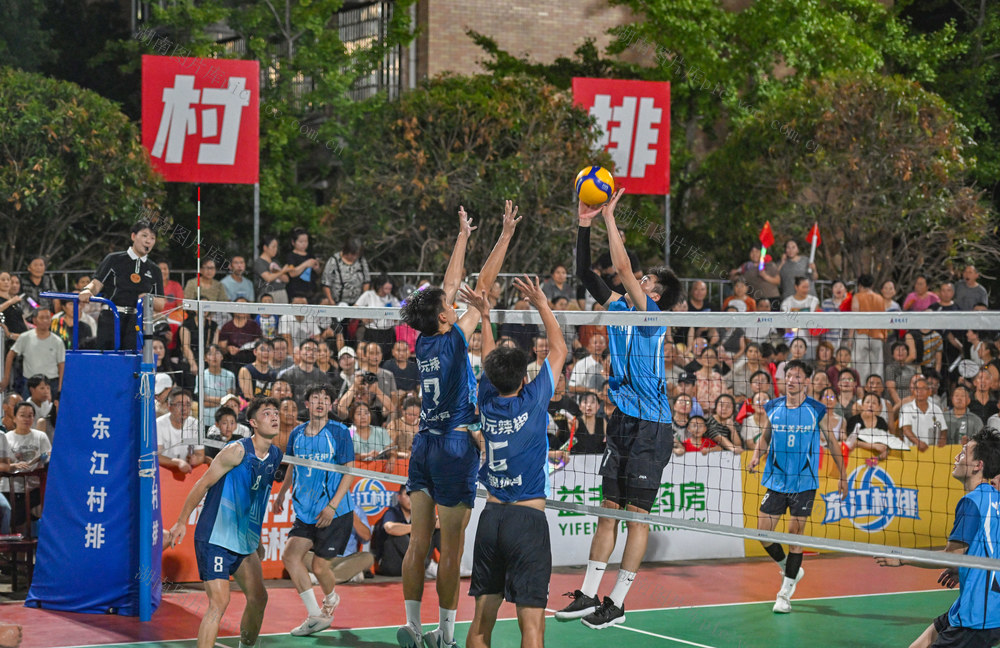 2025年7月29日晚,第三届湖南省“东江村排·益丰杯”乡村排球邀请赛在常德市武陵区东江街道新坡社区落幕,来自北京、重庆、香港、澳门、广东、湖北、湖南等地的16支排球队伍参赛。郭立亮 摄
