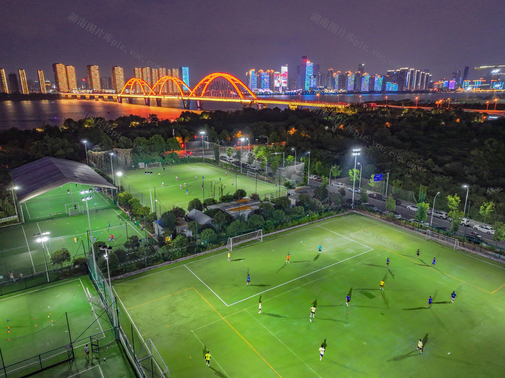 2025年8月4日晚,长沙市滨江体育公园足球场,市民在球场上踢球。近期,随着 “湘超” 热度飙升,吸引越来越多的市民走进足球场运动健身。郭立亮 摄