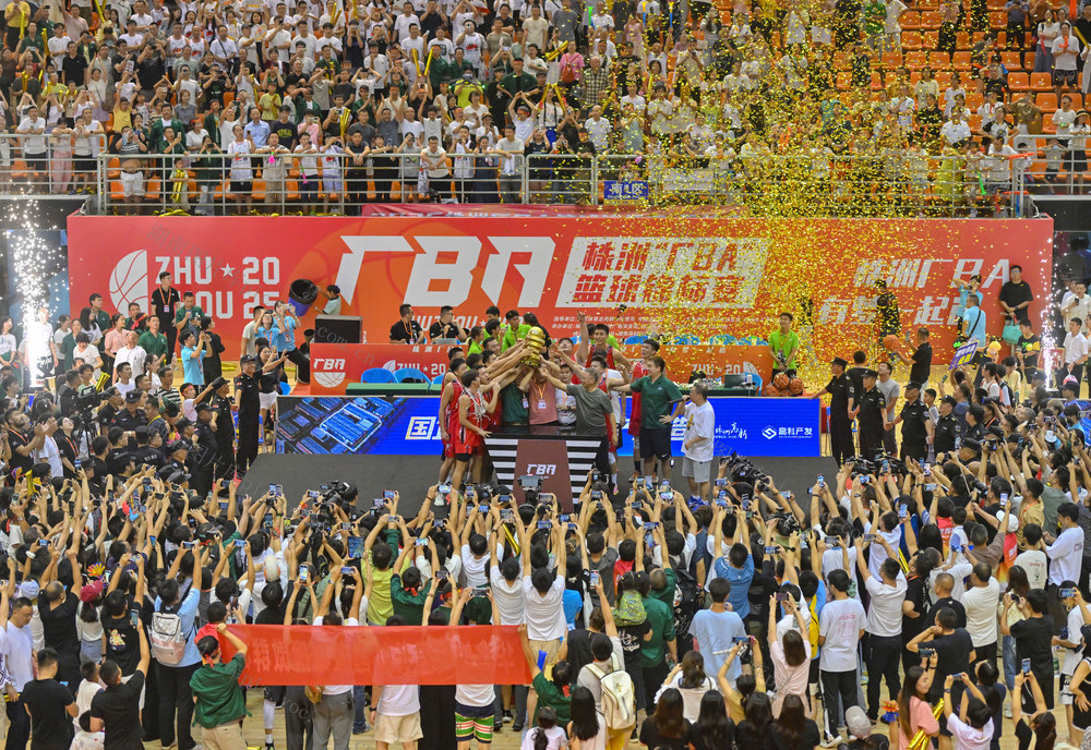 2025年7月27日晚,株洲市体育中心,数万观众见证2025“厂BA”巅峰对决。今年,自“厂BA”开赛以来,累计吸引观众540万人次。郭立亮 摄